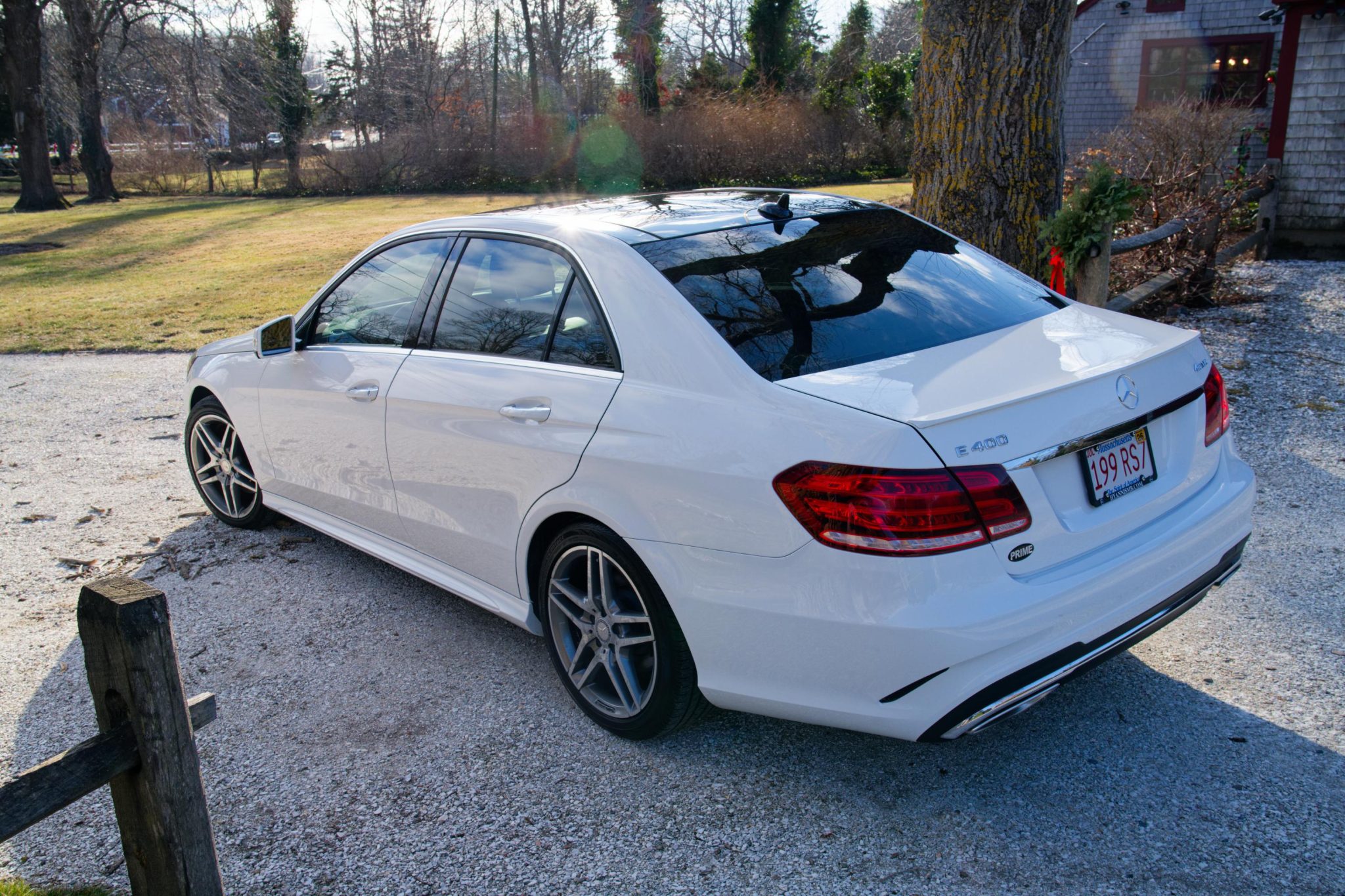 The 18″ AMG split-spoke alloy wheels have curb marks. Stopping power is provided by ventilated discs at each corner.
