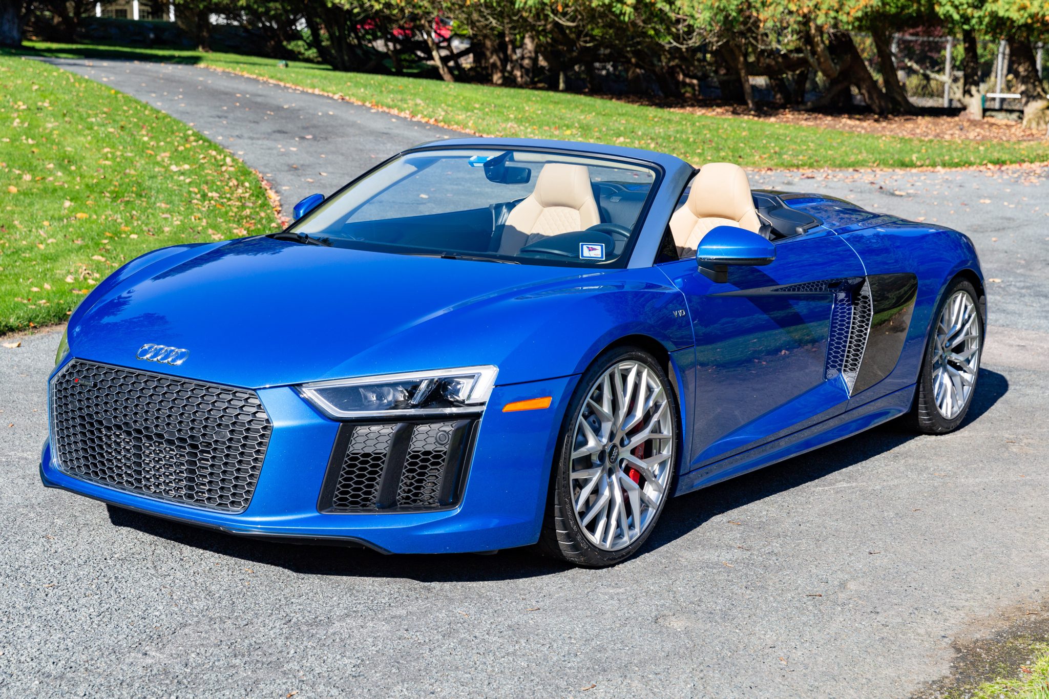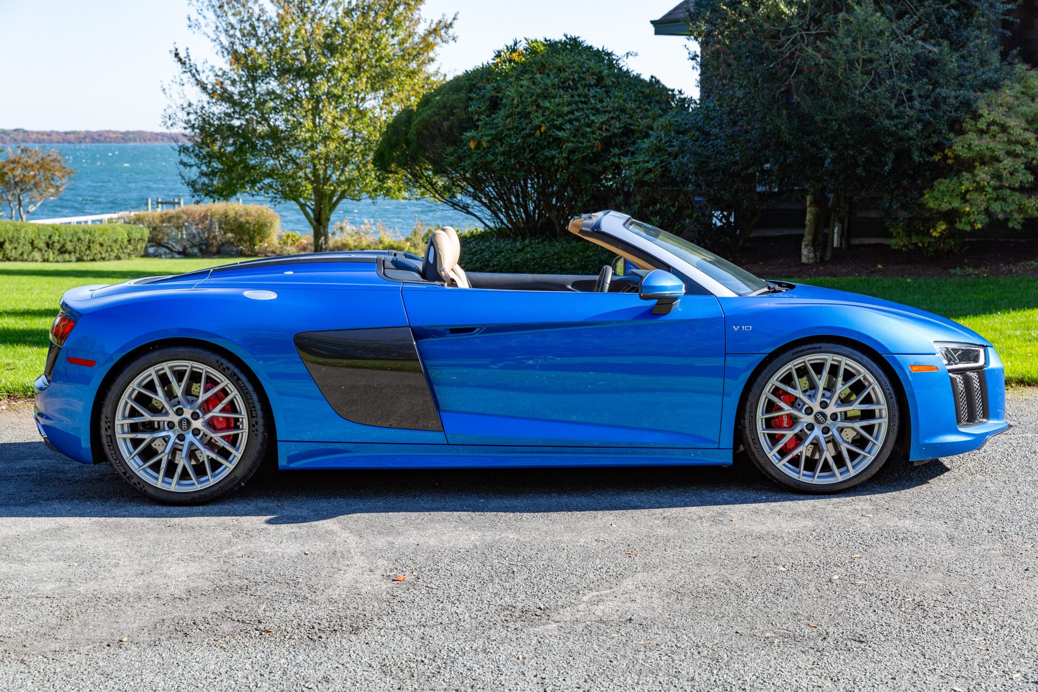 The 20″ Y-design alloy wheels are mounted with Michelin Pilot Sport Cup 2 tires that were installed in November 2022. Braking is handled by red-finished calipers fitted over cross-drilled and ventilated discs at each corner. The car came equipped from the factory with an Audi Magnetic Ride magnetorheological suspension.