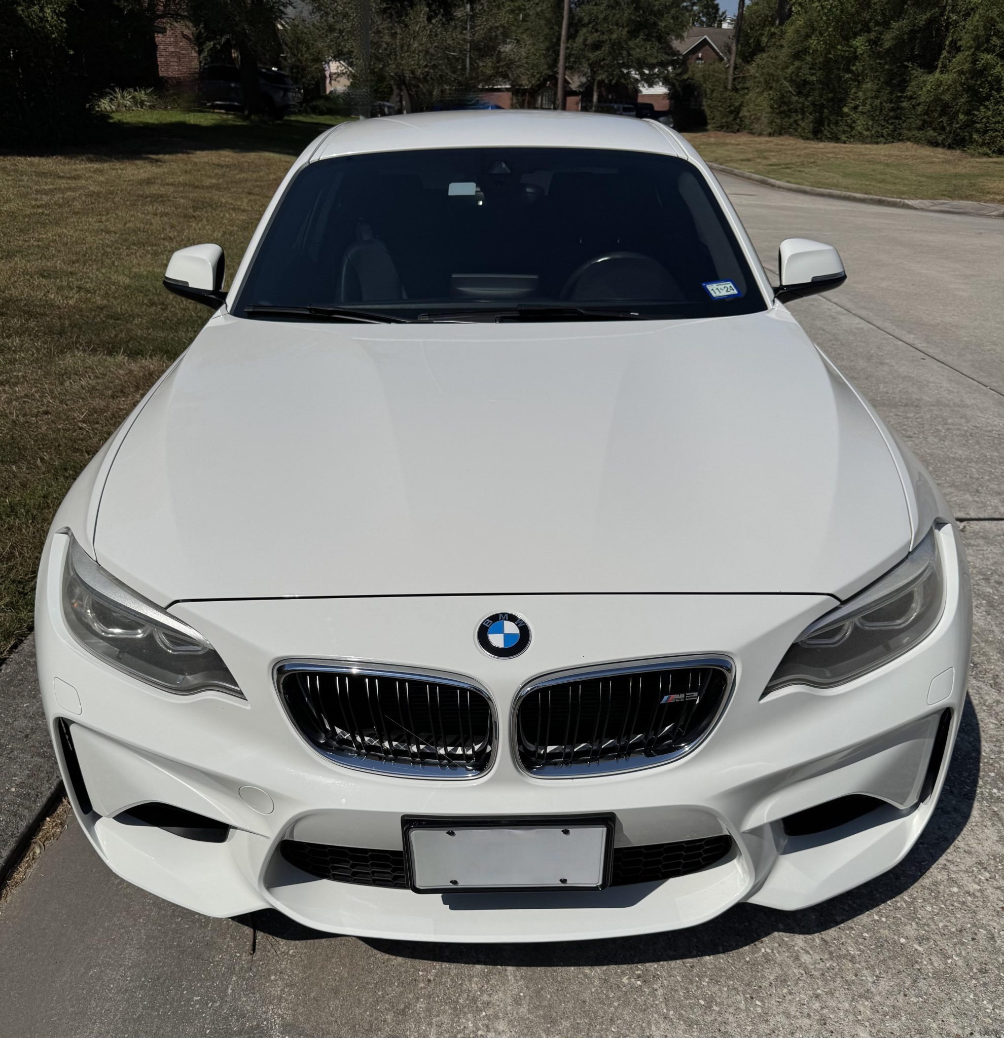 The 19″ Style 437M alloy wheels are mounted with Hankook tires. The car is equipped with an M-specific sport suspension, and braking is handled by M-logo calipers mounted over cross-drilled rotors. The Executive Package added Active Driving Assistant, which included lane-keep assist and pre-collision warning. A wheel was repaired in August 2024, per the seller.