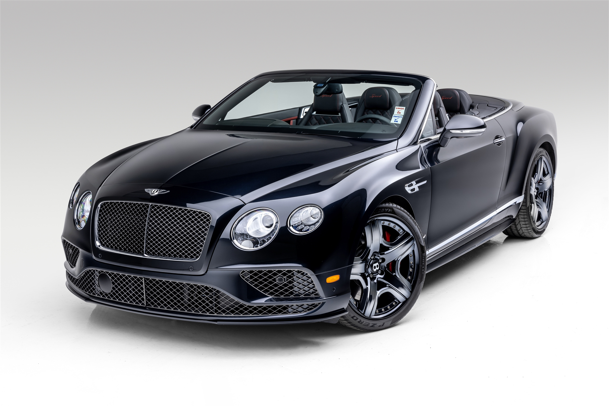 The 21″ multi-piece five-spoke wheels are mounted with Pirelli P Zero tires. Stopping power is provided by red-accented calipers fitted over ventilated rotors at each corner. The car is equipped with variable steering assist as well as air suspension with electronically controlled dampers.