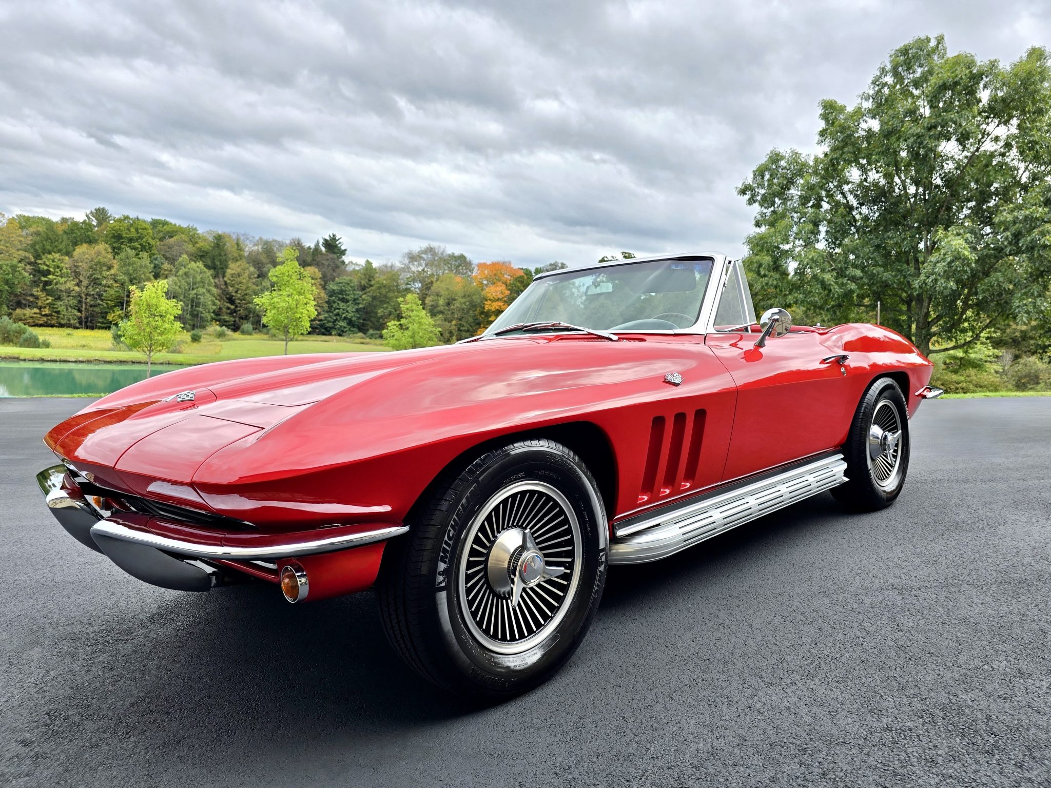 The 15″ cast aluminum wheels feature knock-off hubs and are mounted with 215/70 Michelin X Radial tires that were mounted in 2010. The C2 Corvette utilized fully independent suspension, with upper and lower control arms at the front and a three-link setup with a transverse leaf spring at the rear. The car is equipped with power steering, and braking is handled by four-wheel discs.