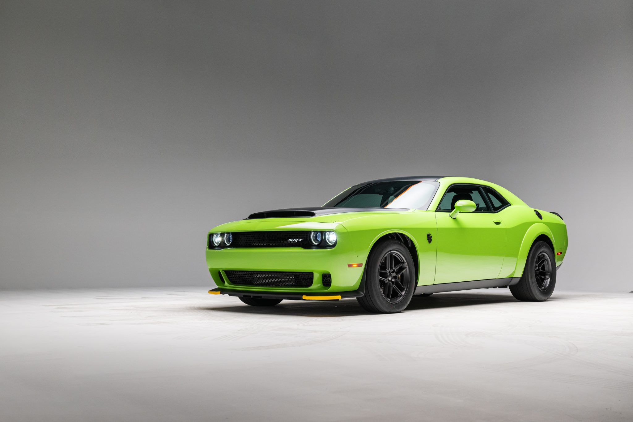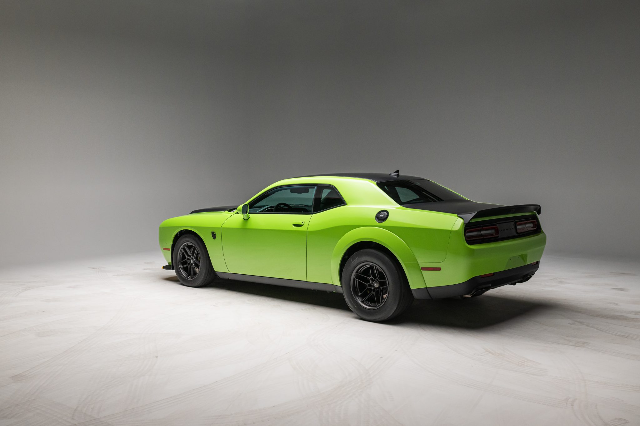 Black-finished 18″ front and 17″ rear forged aluminum wheels are mounted with Mickey Thompson tires. Stopping power is provided by black four-piston Brembo calipers with yellow SRT lettering over ventilated discs. The Demon 170 is equipped with an edition-specific Drag Mode suspension with adaptive-damping shocks as well as launch control, a line lock, and a revised transbrake.