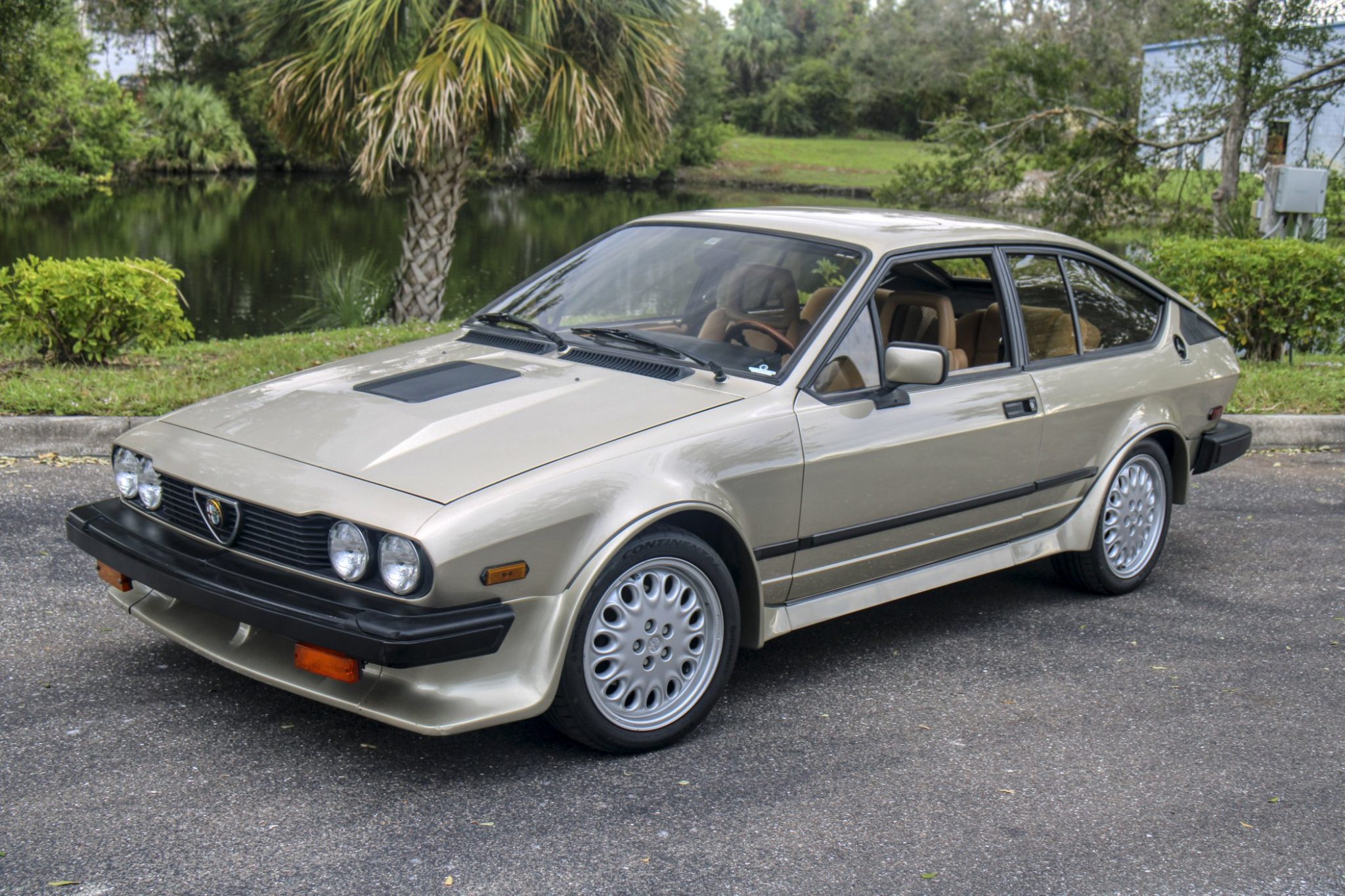 The 16″ wheels wear Alfa Romeo caps and are mounted with 205/45 Continental ExtremeContact Sport 02 tires that were installed under current ownership. The car is equipped with independent double-wishbone front and de Dion tube rear suspension, and stopping power is provided by power-assisted ventilated front and inboard-mounted rear discs.