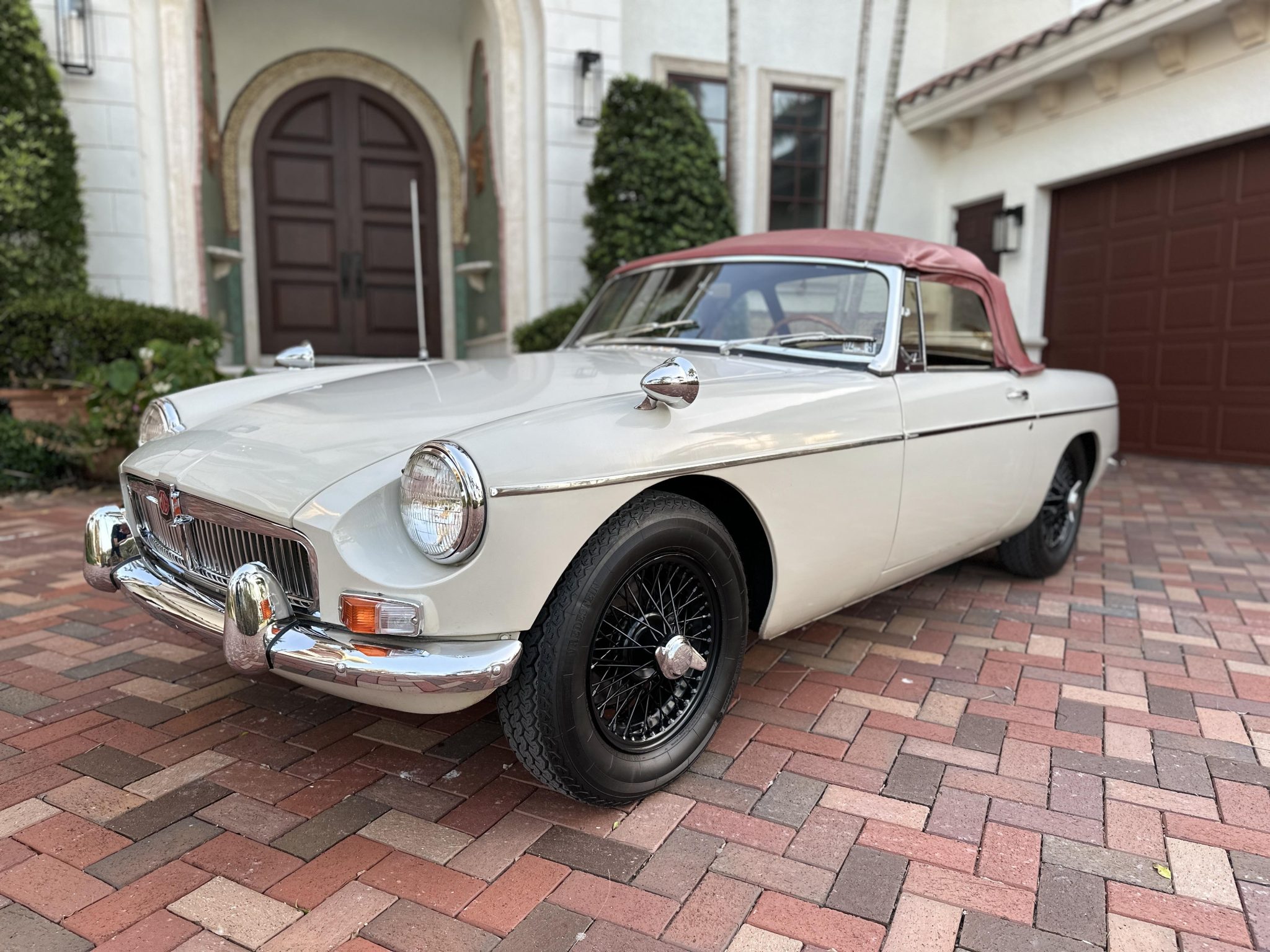 Wire-spoke 14″ wheels were powder-coated black and mounted with Vredestein Sprint Classic tires under previous ownership. A spare wheel and tire are located in the trunk. Braking is provided by front discs and rear drums.