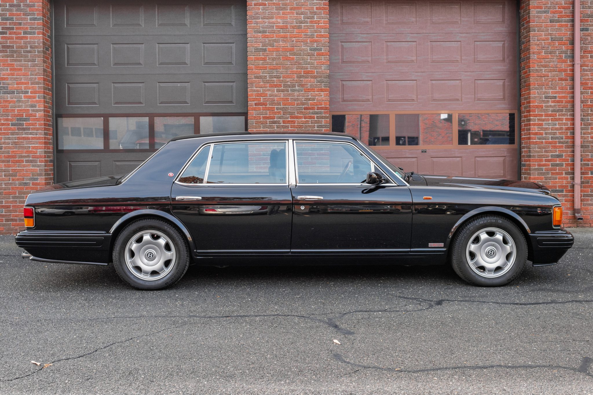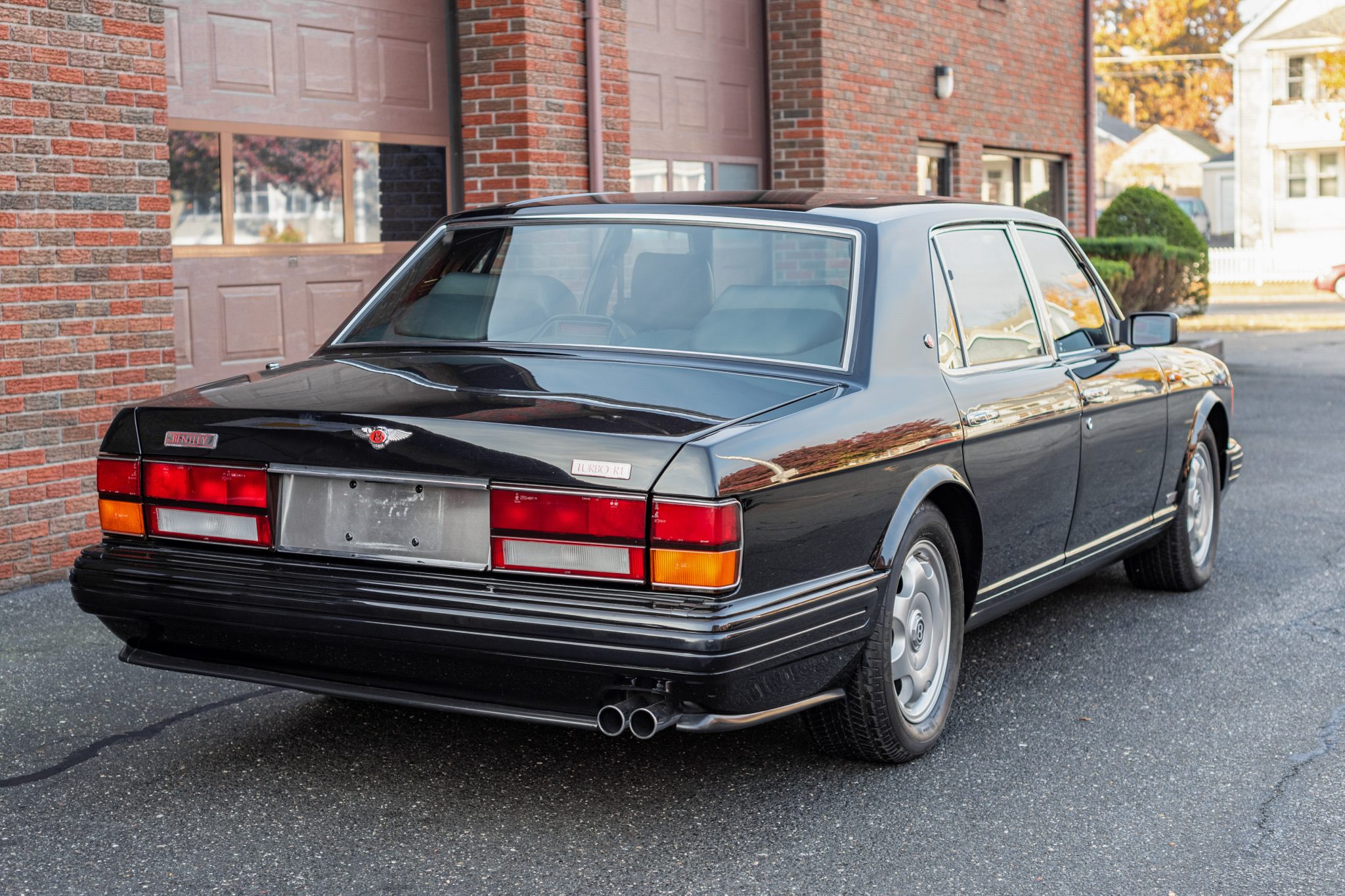 Silver Bentley 17″ alloy wheels are mounted with 255/55 Avon Turbospeed CR228-D tires that show 2023 production codes. A Mulliner-specification steering rack with a faster turning ratio was installed during the refurbishment along with replacement front and rear shocks, ball joints, bushings, gas springs, brake accumulators, and hoses for the power steering and brake systems.