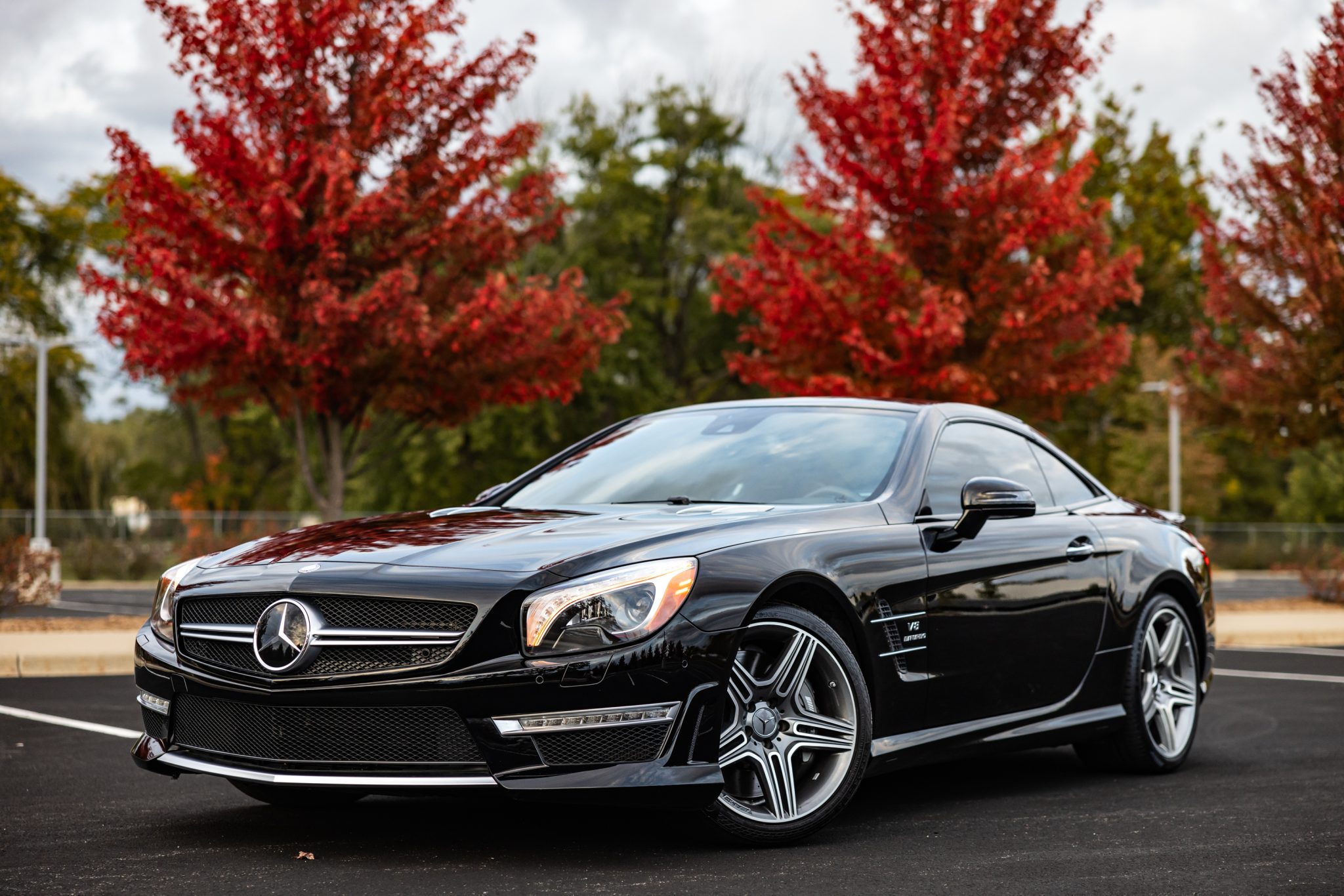 The 19″ AMG five-spoke alloy wheels are mounted with 255/35 front and 285/30 rear Continental tires, the rear of which were replaced in 2024. The car rides on an AMG-tuned Active Body Control (ABC) electronically adjustable suspension, and stopping power is provided by AMG-branded calipers over slotted and cross-drilled rotors.