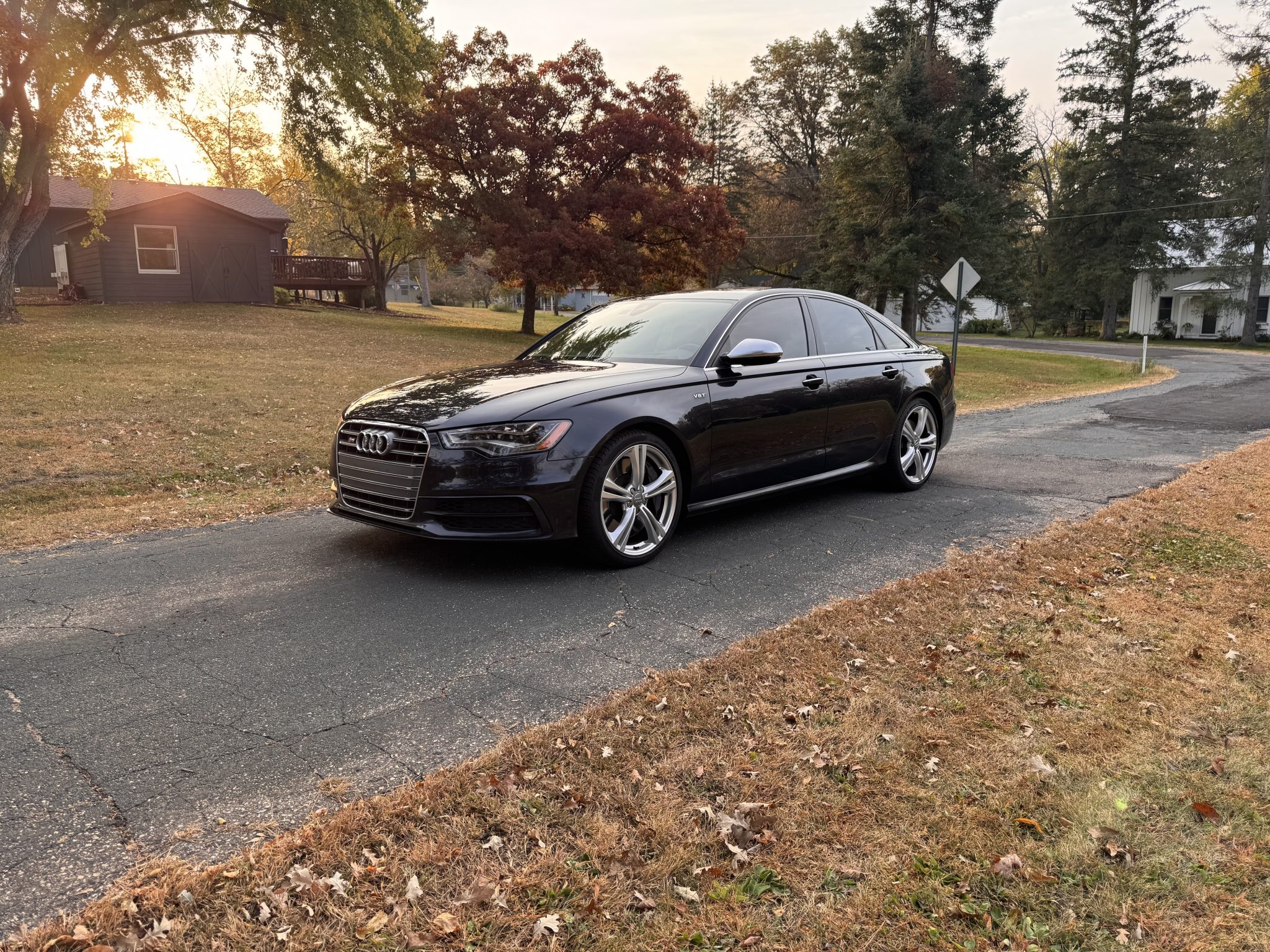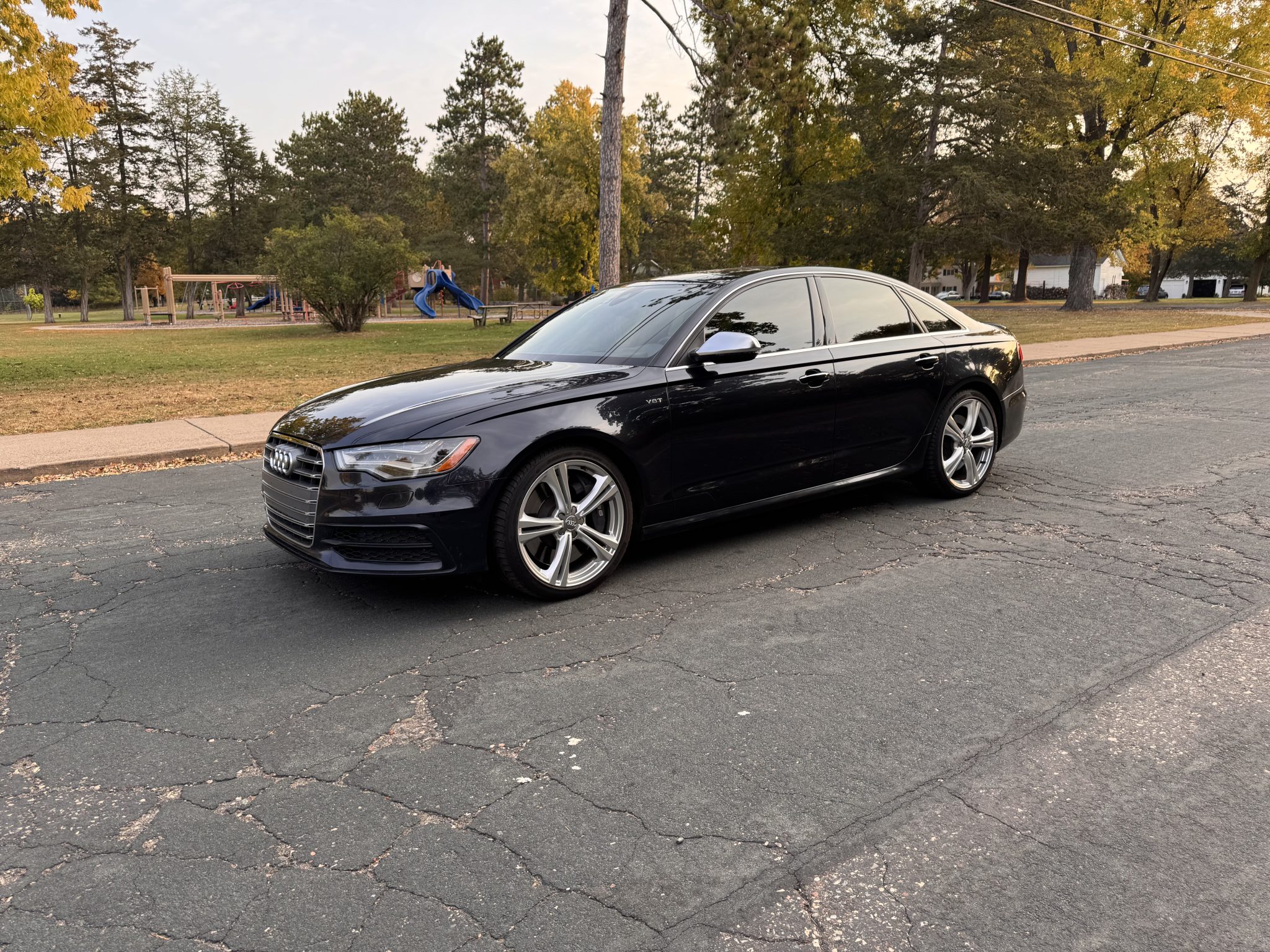 The 20″ Audi Sport parallel-spoke alloy wheels are mounted with Pirelli P Zero tires. The car is equipped with adaptive air suspension and Electronic Stabilization Control (ESC), and stopping power is provided by four-wheel ventilated disc brakes.