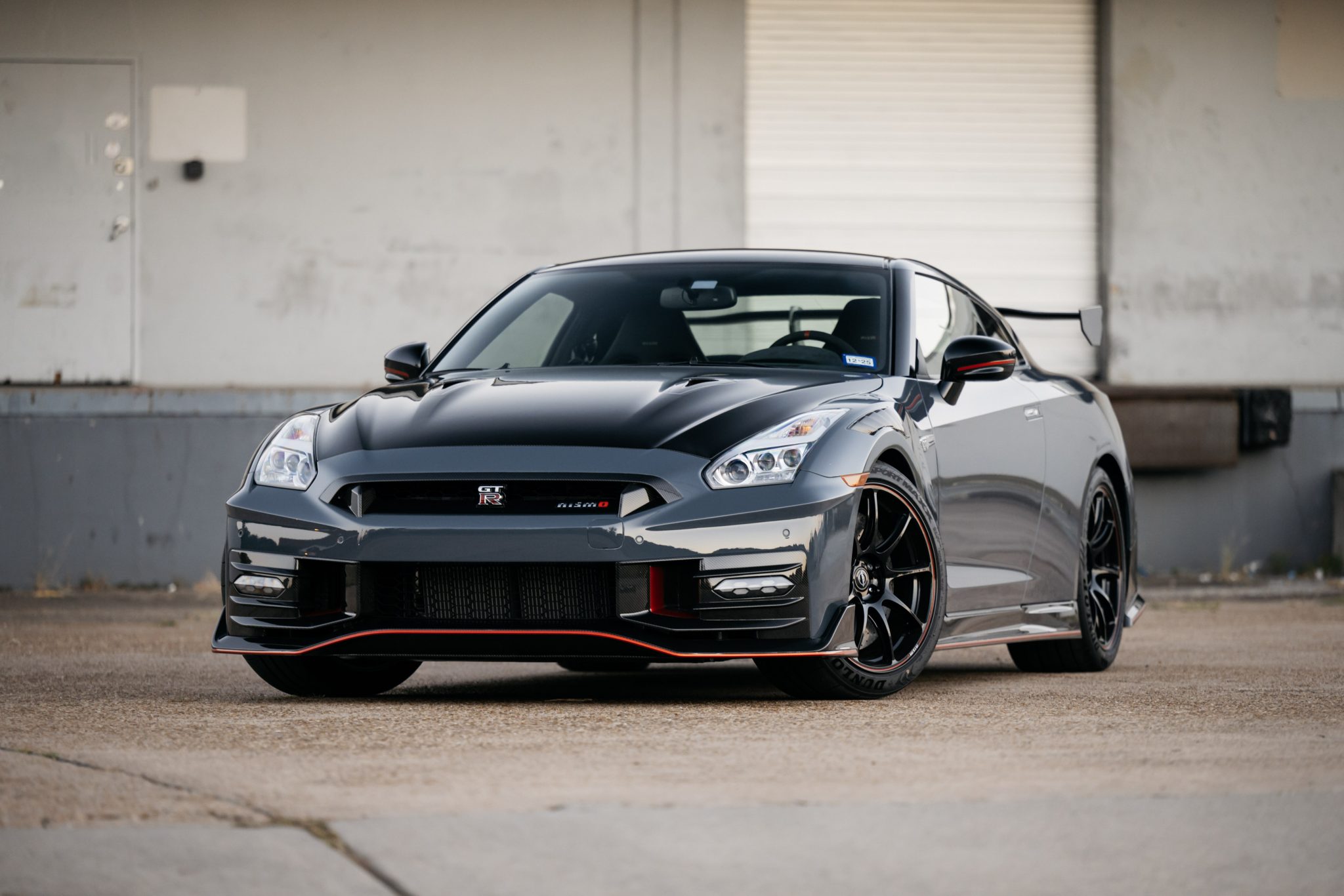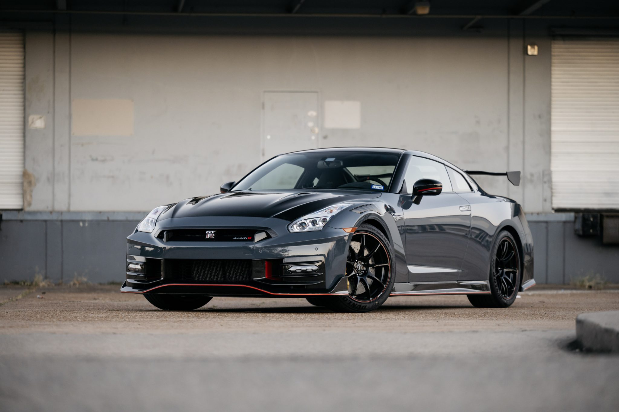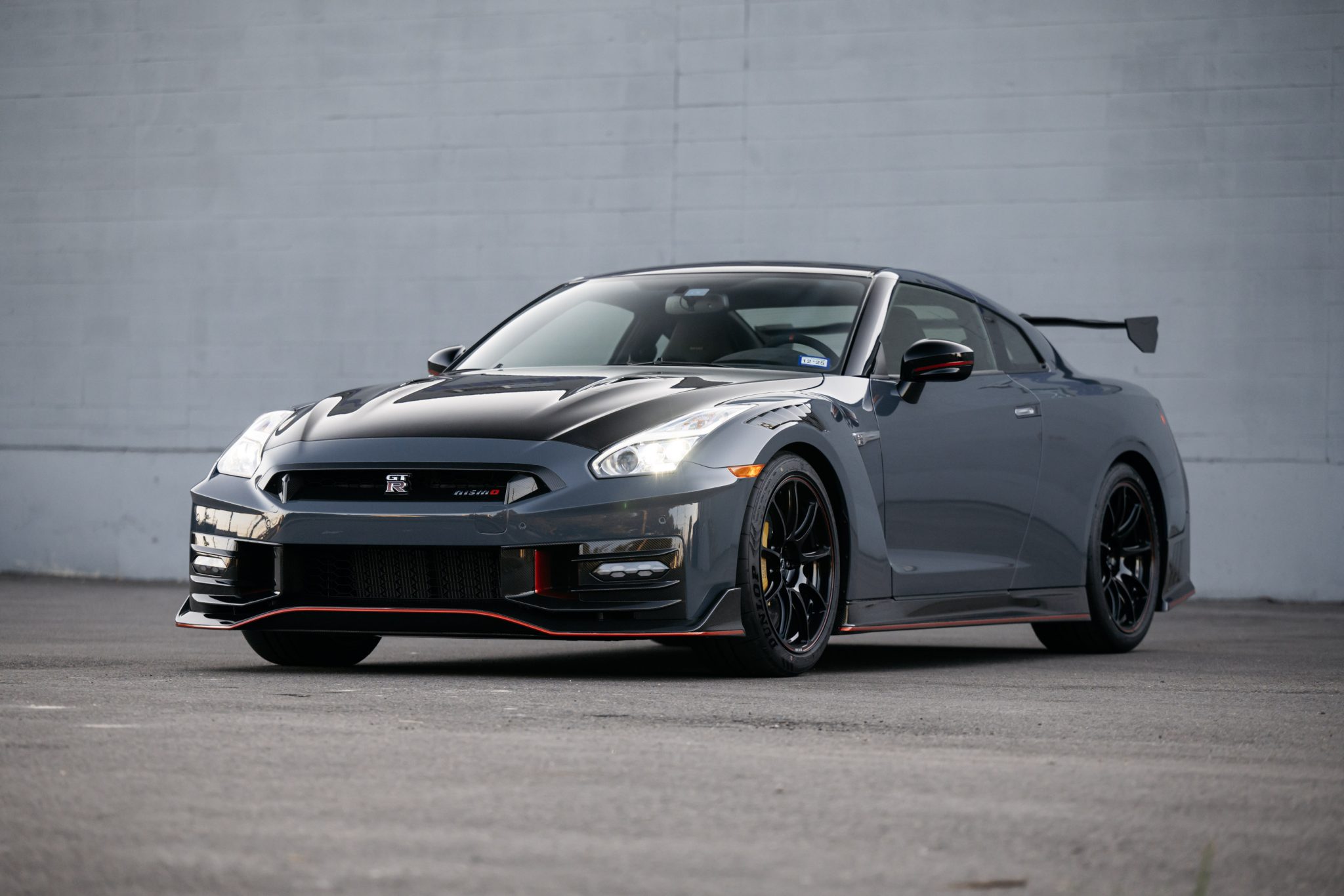 Gloss-black RAYS 20″ forged alloy wheels are mounted with 255/40 front and 285/35 rear Dunlop SP Sport Maxx GT 600 DSST tires. The NISMO-tuned Bilstein DampTronic suspension system has three driver-selectable modes. Braking is provided by yellow-finished Brembo calipers mounted over cross-drilled carbon-ceramic rotors, and the system features electronic brake-force distribution (EBD).