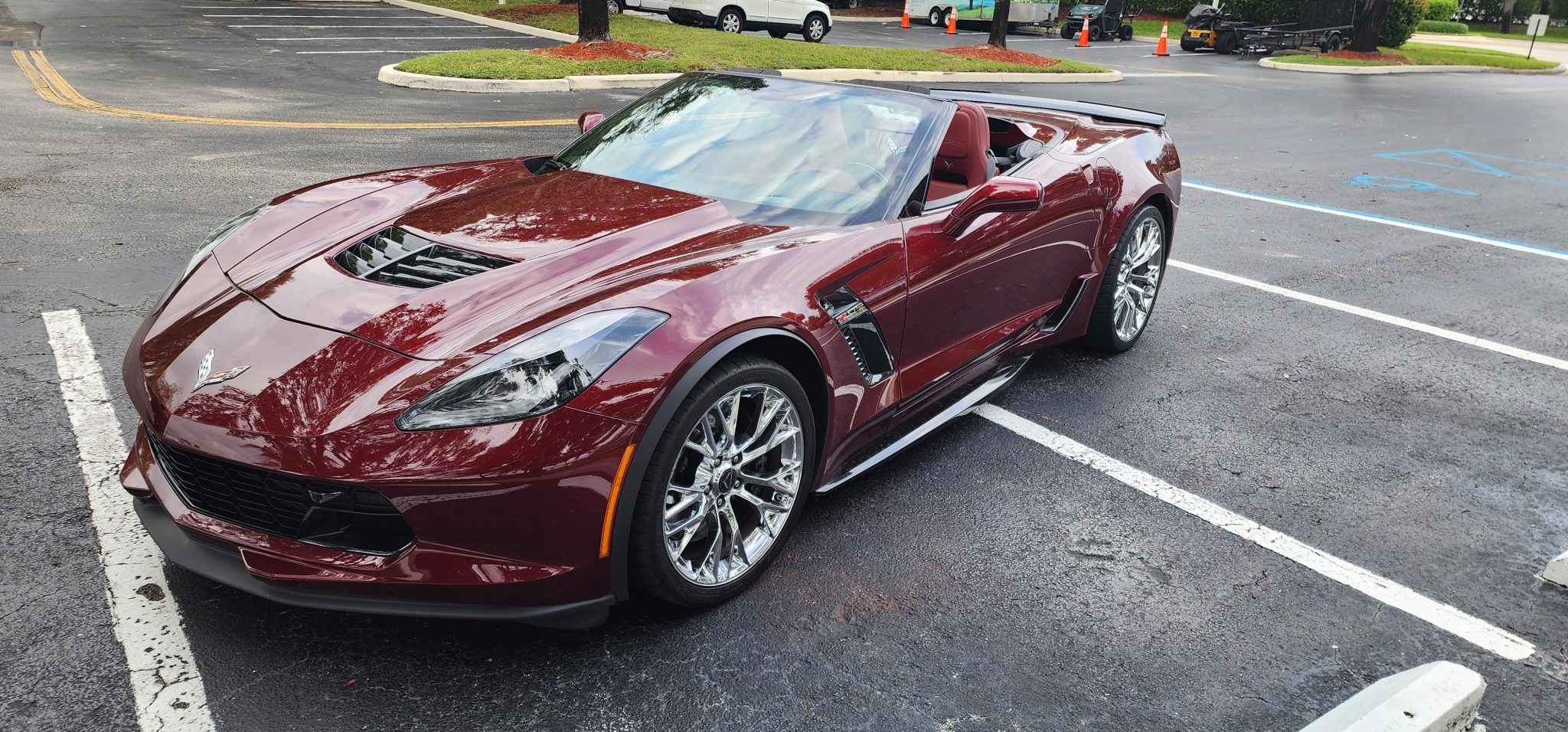 Pearl nickel-finished 19″ and 20″ Z06 alloy wheels are mounted with Michelin tires. The car is equipped with Magnetic Ride Control, Performance Traction Management, and an Active Handling System. Stopping power is provided by black-finished Brembo brake calipers over slotted and ventilated rotors at each corner.