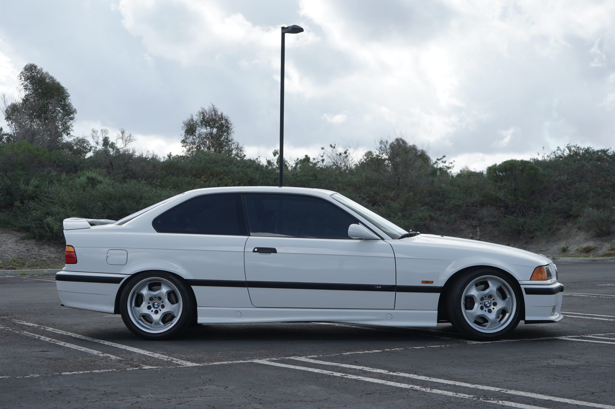 Silver 17″ Style 23 wheels are mounted with 225/45 front and 245/40 rear Hankook Ventus V12 Evo and Evo2 tires. The car rides on Bilstein coilovers and is equipped with traction control and four-wheel disc brakes. The seller reports that the brake light switch was replaced in February 2024. Blemishes on the wheels are viewable in the photo gallery below.