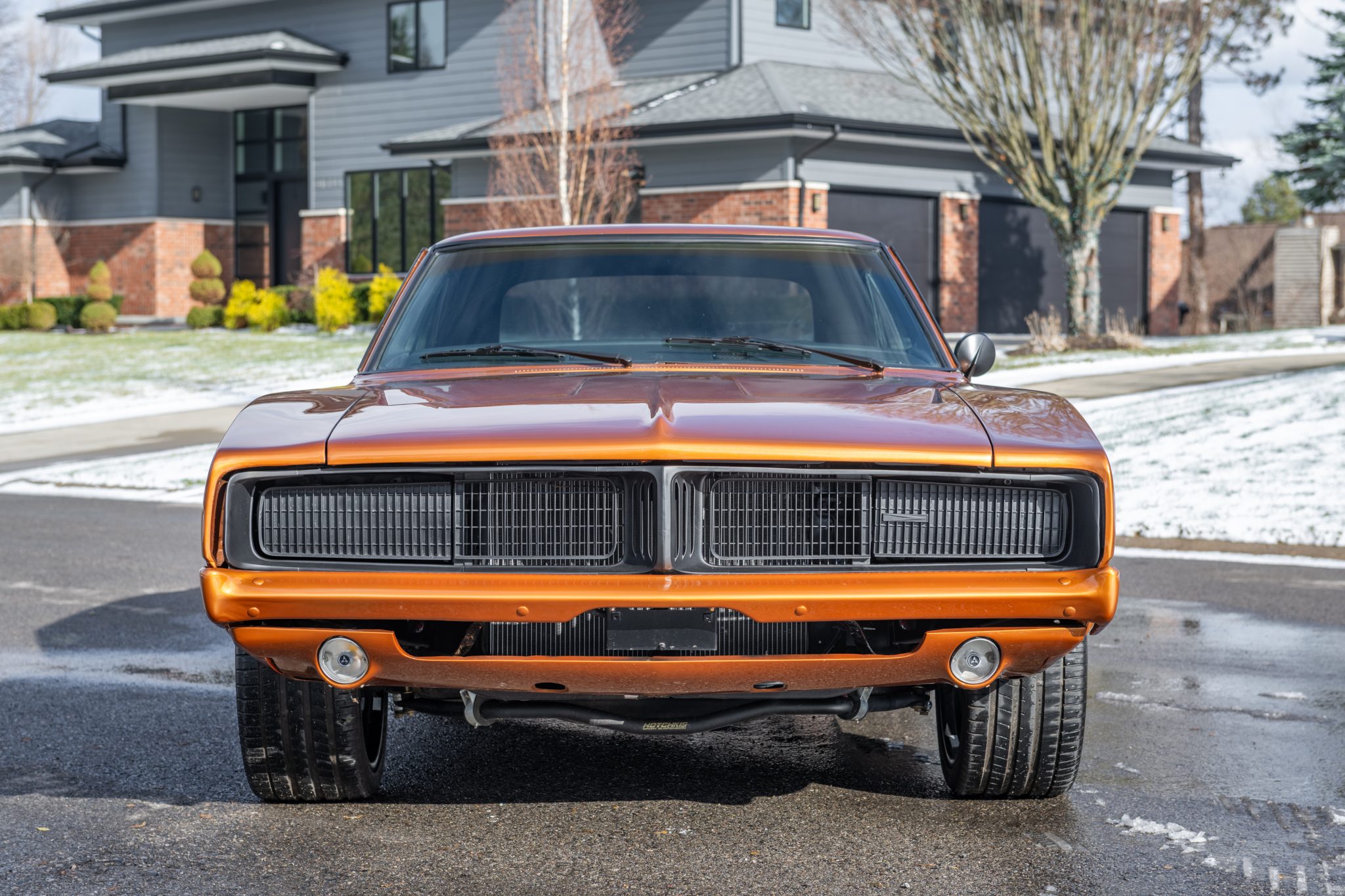 Custom ten-spoke, three-piece wheels with Uribe Performance–logo centers measure 19×9.5″ at the front and 19×11.5″ in the rear. Falken Azenis FK510 tires are sized 275/35 in front and 305/30 out back. A Wilwood hydro-boost four-wheel-disc braking system features drilled and slotted rotors as well as body-color calipers (six-piston front and four-piston rear). A Hotchkis TVS suspension system has been installed, and the car also has power steering.