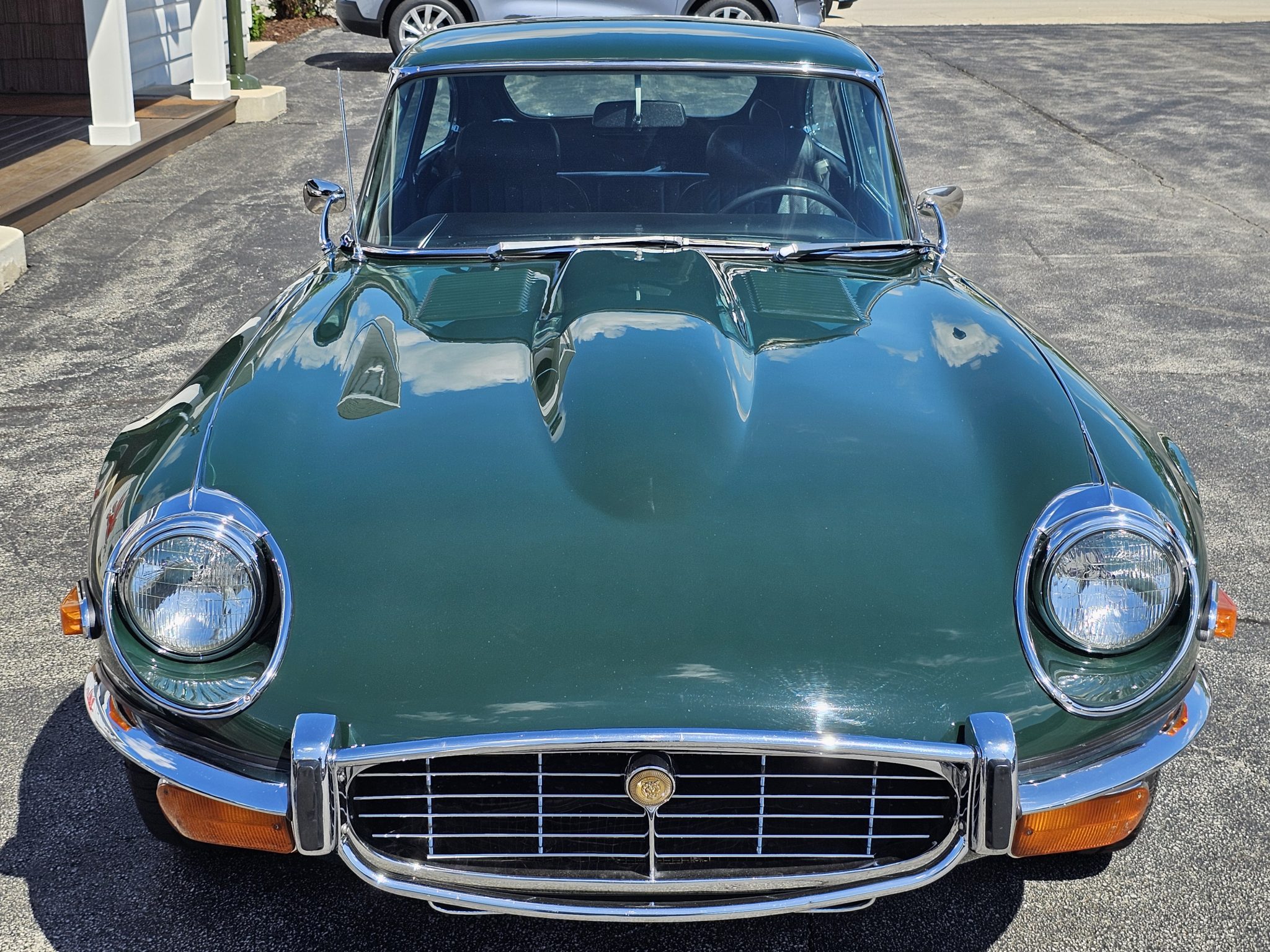 Wire-spoke 15″ wheels are secured with knock-off spinners and mounted with 205/70 Pirelli P4000 Super Touring tires. The Series III E-Type was factory equipped with power steering as well as four-wheel disc brakes with inboard-mounted rear rotors.