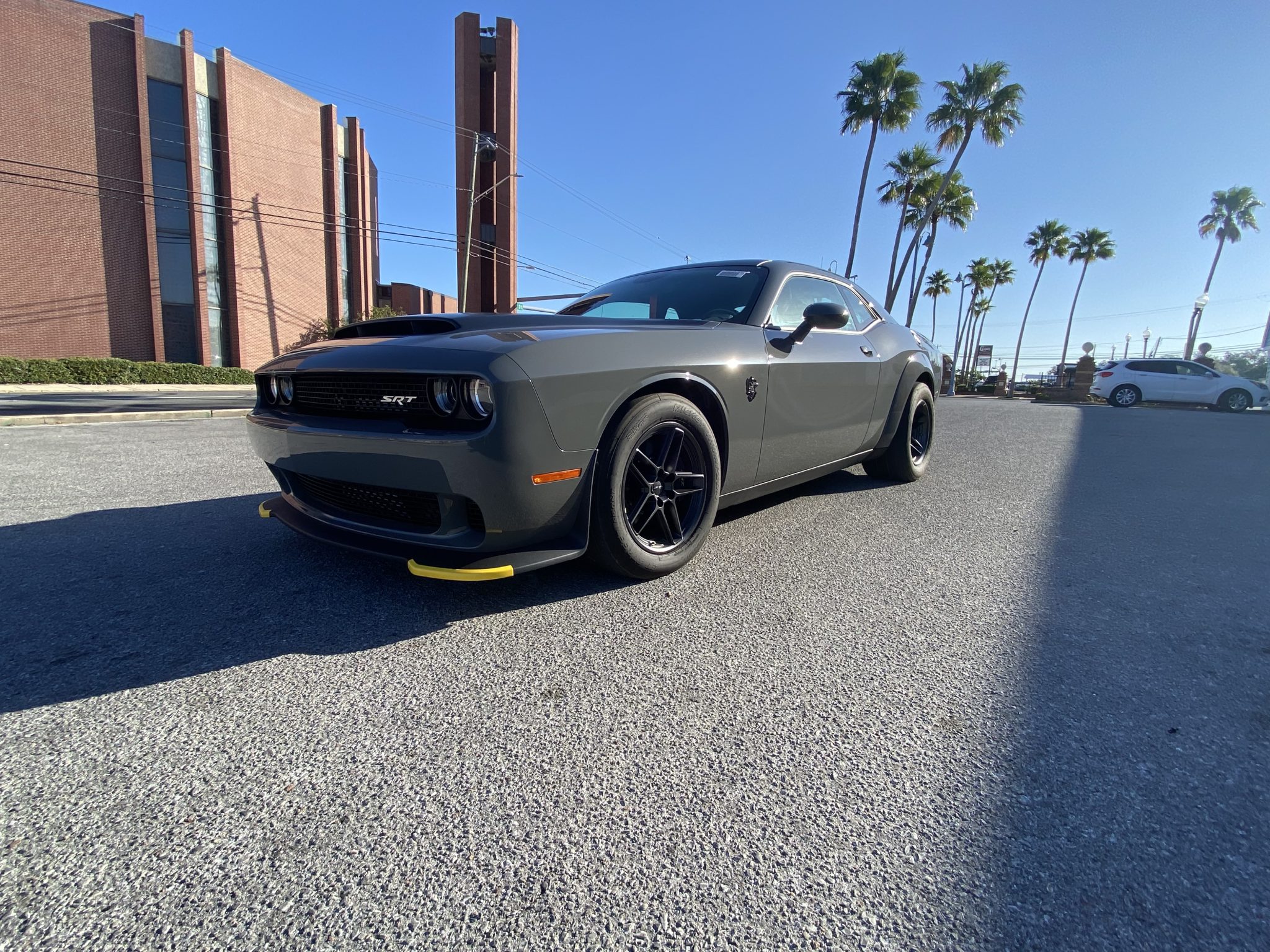 Black 18″ front and 17″ rear forged aluminum wheels are mounted with Mickey Thompson tires. Stopping power is provided by black four-piston Brembo calipers with yellow SRT lettering over ventilated discs. The Demon 170 is equipped with an edition-specific Drag Mode suspension with adaptive-damping shocks as well as launch control, a line lock, and a revised transbrake.