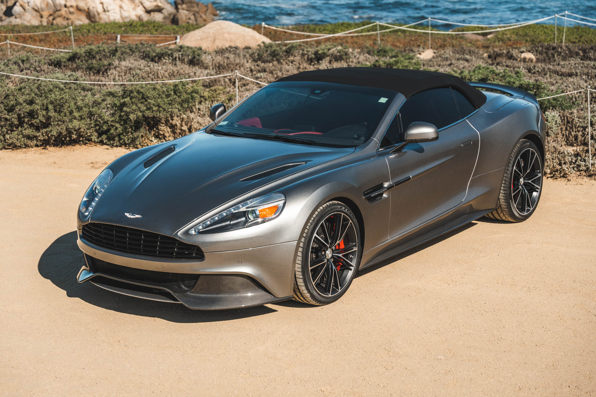 Diamond-turned 20″ forged have Satin Black accents and wear Pirelli P Zero tires that were installed recently. The car rides on a sport-tuned adaptive suspension with forged dual wishbones at all four corners. Stopping power is provided by red multi-piston calipers paired with cross-drilled carbon-ceramic discs.