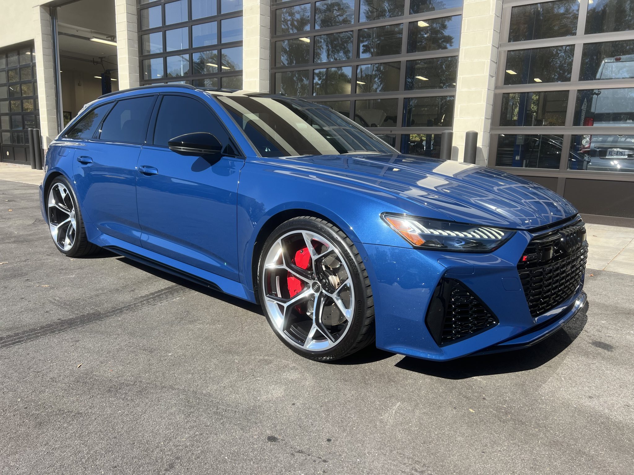 Bi-color 22″ five-Y-spoke wheels are mounted with Continental tires measuring 285/30 all around. The car is equipped with rear-axle steering and an RS-tuned adaptive air suspension. Braking is handled by red-finished RS-logo calipers mounted over cross-drilled and ventilated rotors that measure 16.5″ up front and 14.6″ out back.