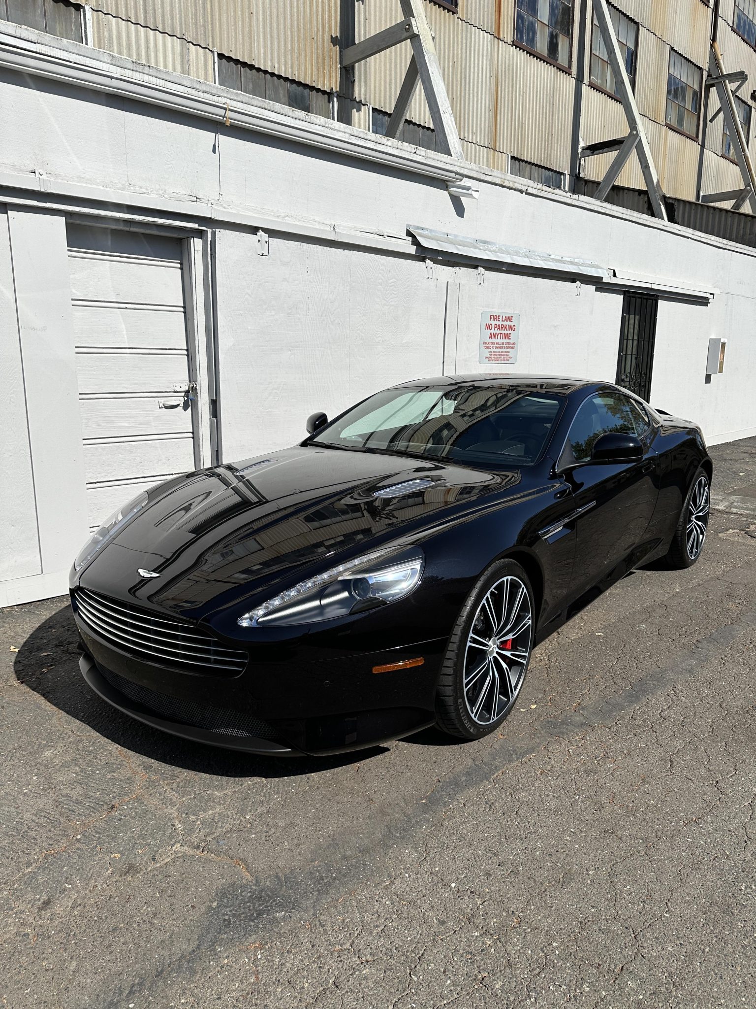 The 20″ split-spoke diamond-turned alloy wheels are mounted with Michelin Pilot Sport 4S tires. The car is equipped with adaptive dampers, and braking is handled by cross-drilled ceramic-composite rotors paired with red-finished Aston Martin-branded calipers.