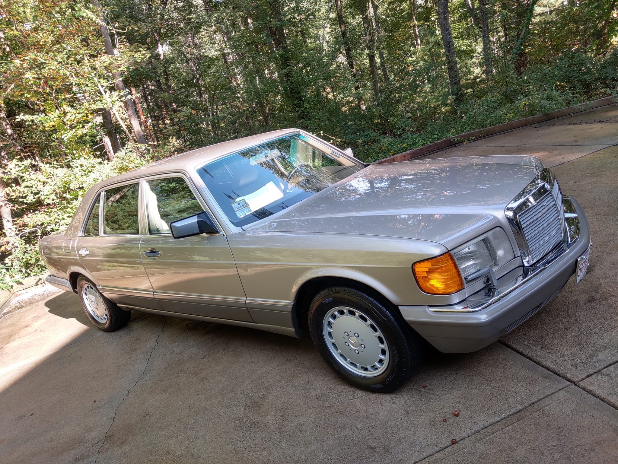 The silver-finished 15″ Gullideckel alloy wheels have been refinished and are mounted with Michelin tires. Braking is handled by power-assisted four-wheel discs. The left and right tie rods were replaced in May 2022 and April 2023, respectively.