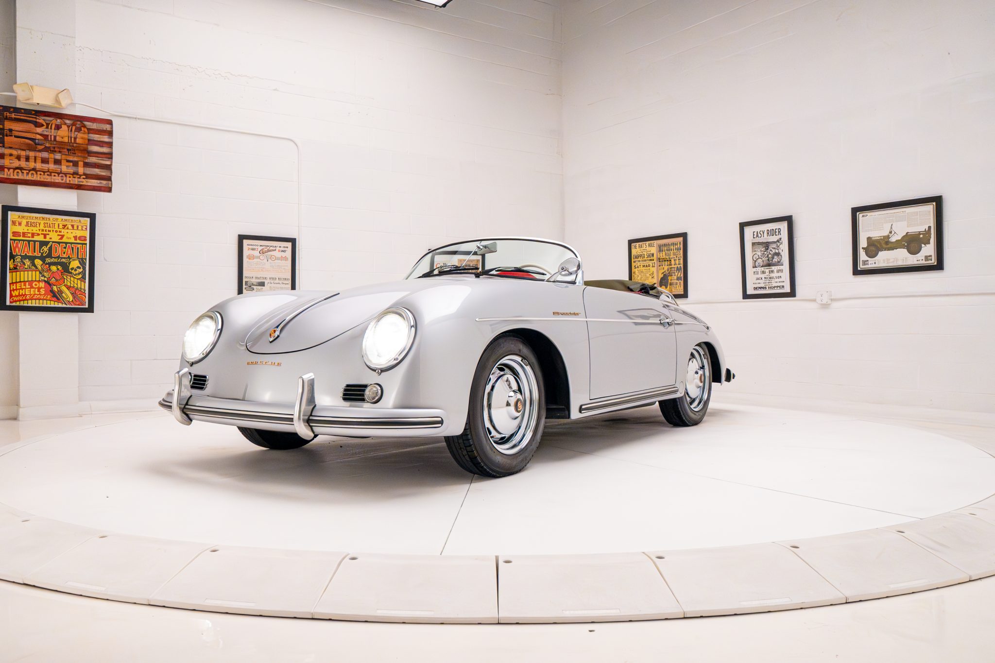 Chrome 15″ steel wheels wear matching hubcaps with full-color Porsche crests and are mounted with 155/80 BFGoodrich Radial T/A tires. Stopping power is provided by front disc and rear drum brakes.