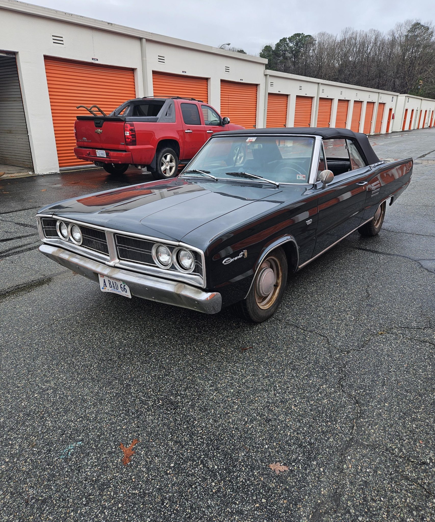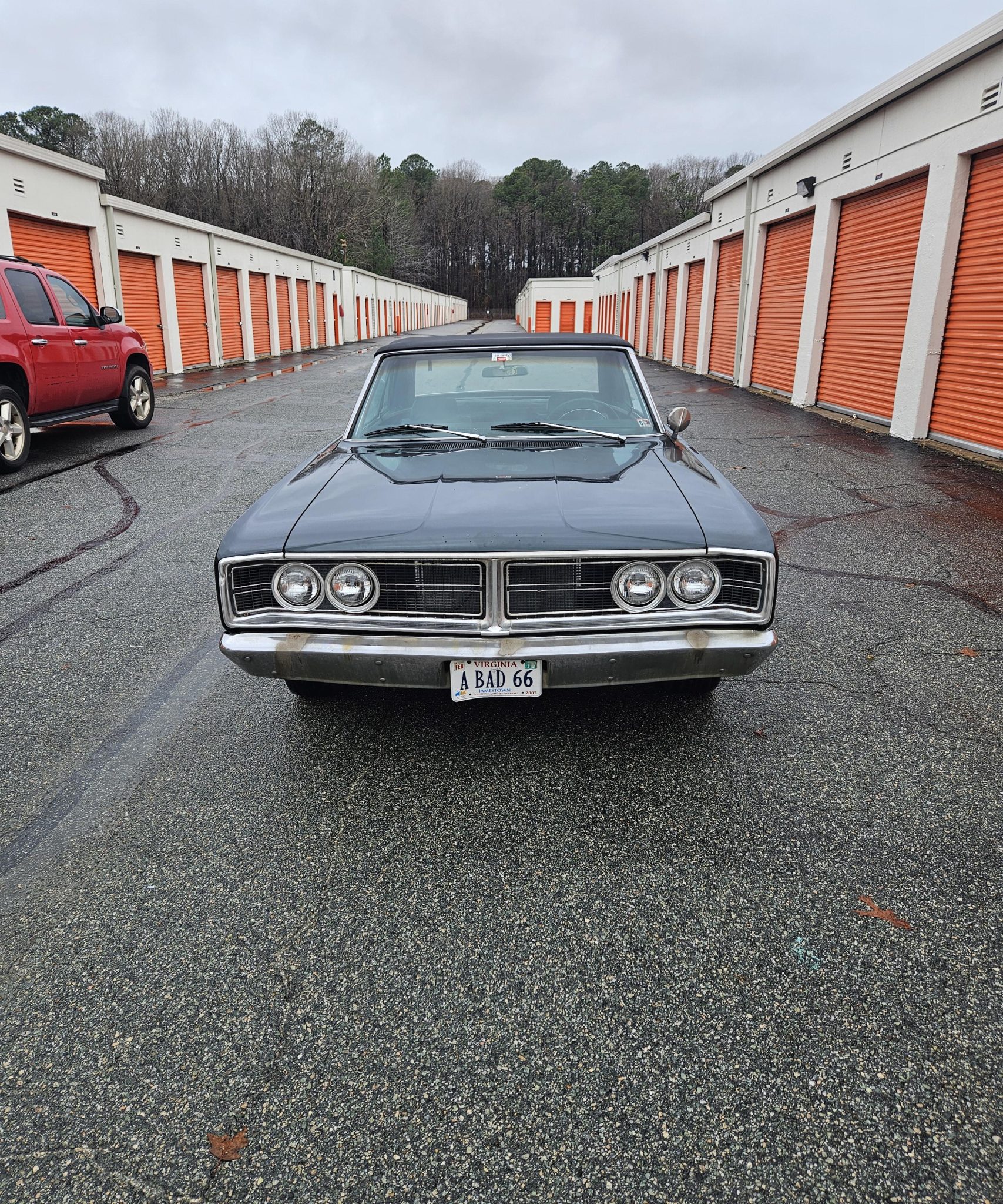 Silver-painted 15″ steel wheels with hubcaps are mounted with 205/65 Firestone Firehawk tires; the wheels exhibit corrosion, and the tires are dry rotted. The front brakes were converted to discs in 2023, and the system is power assisted.