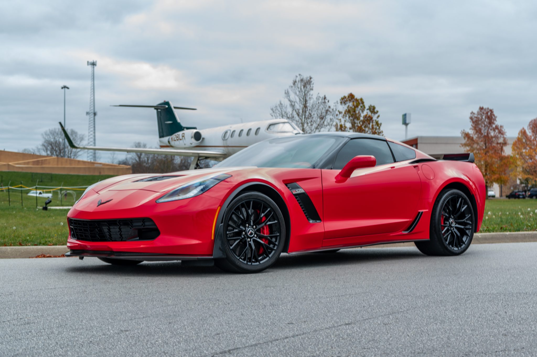 Black-finished 19″ and 20″ Z06 alloy wheels are mounted with Michelin Pilot Sport Cup 2 tires. The car is equipped with a Z07 suspension in addition to Performance Traction Management and an Active Handling System. Stopping power is provided by red-finished Brembo brake calipers over drilled and ventilated carbon-ceramic rotors at each corner.