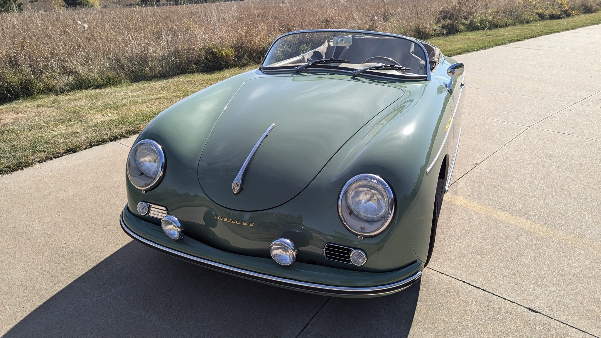 Polished 15″ Vintage 190 aluminum wheels wear chrome hubcaps with Porsche crests and are mounted with Ohtsu FP7000 tires. Stopping power is provided by four-wheel disc brakes.