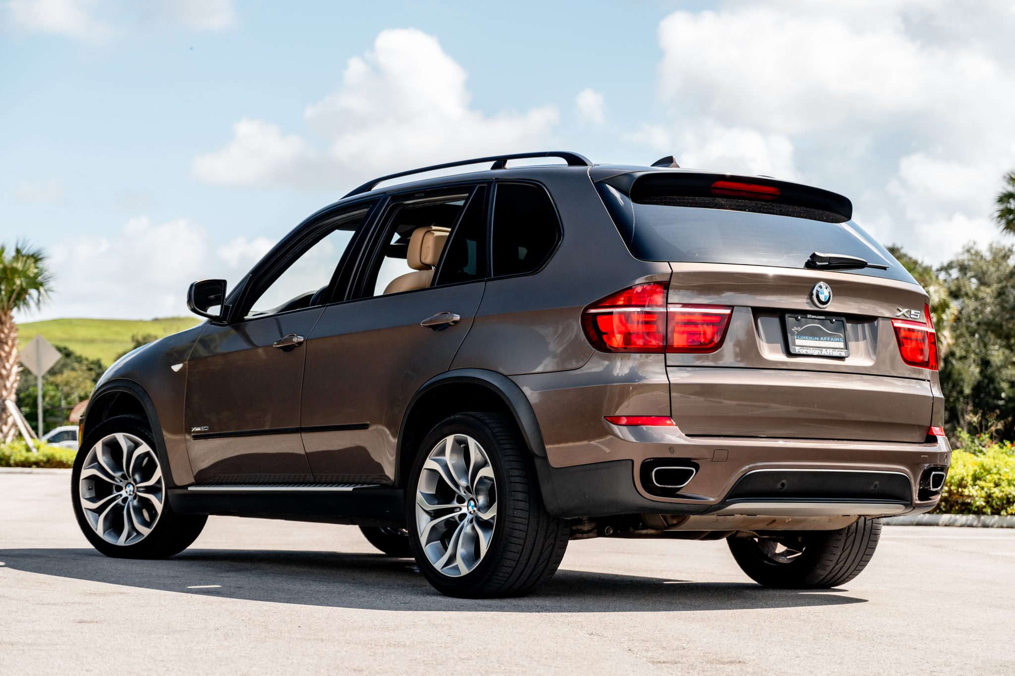 The 20″ Style 336 Y-spoke alloy wheels are mounted with 275/40 front and 315/35 rear Bridgestone Dueler H/P Sport tires. Stopping power is provided by disc brakes at all four corners.