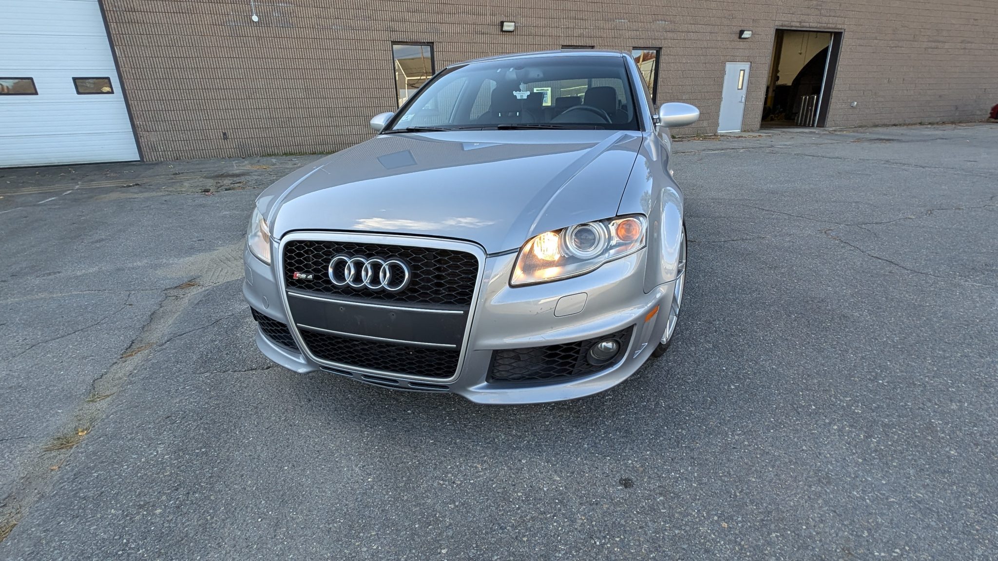 Silver-finished 19″ split-spoke wheels are mounted with 255/35 Michelin Pilot Sport A/S 3+ tires. The car is fitted with BC coilovers that were installed in September 2024, and stopping power is provided by drilled discs at all four corners, with RS-logo eight-piston calipers over 14.4″ rotors up front. The brake pads and rotors were replaced with Brembo components in February 2021, and in June 2024 the upper control arms were replaced.