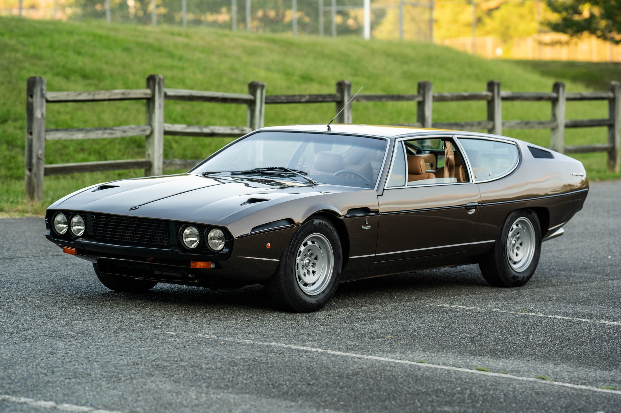 The five-lug Campagnolo 15″ alloy wheels were refinished in silver, and they are mounted with 215/70 Kumho Solus TA51a tires. The car rides on Koni dampers, and the suspension, brakes, and the power steering system were refurbished with replacement bushings, lines, and seals.
