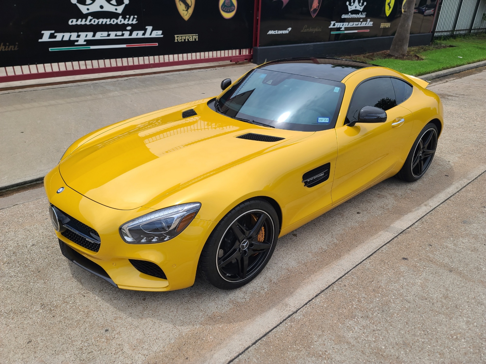 The 19″ and 20″ black AMG forged twin five-spoke wheels are mounted with 265/35 front and 295/30 rear Michelin Pilot Super Sport tires, three of which were replaced in October 2024. Optional ceramic-composite brakes with gold-painted calipers are fitted at all four corners, and the car came equipped from the factory with an adaptive sport suspension. The AMG Dynamic Plus Package added firmer damping, reprofiled steering, and increased negative front-wheel camber.