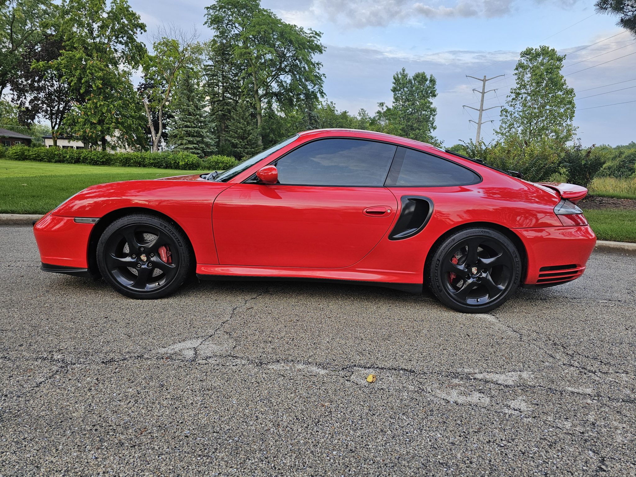 Black powder-coated 18″ Turbo Twist wheels are mounted with 225/40 front and 295/30 rear Michelin Pilot Sport 4 S tires that have 2021 production-date codes. The car is equipped with Porsche Stability Management (PSM) and an automatic brake differential. Braking is from vented and cross-drilled rotors as well as red-finished calipers. The ABS pump and deceleration sensor were replaced in August 2023.
