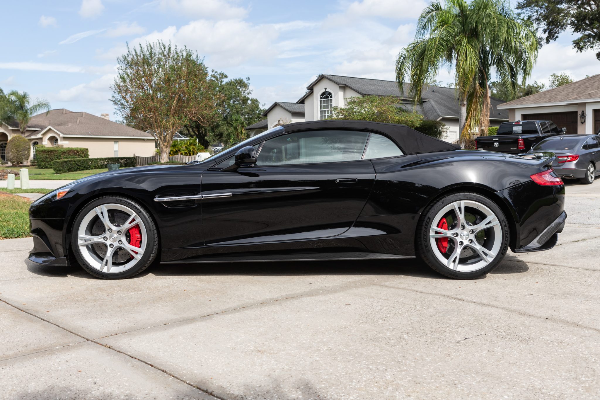 The 20″ DT Lightweight wheels have been ceramic coated and were mounted in February 2024 with Michelin Pilot Sport 4S tires. The car is equipped with an adaptive damping system, and stopping power is handled by red brake calipers over cross-drilled and ventilated Carbon Ceramic Matrix (CCM) rotors at each corner.
