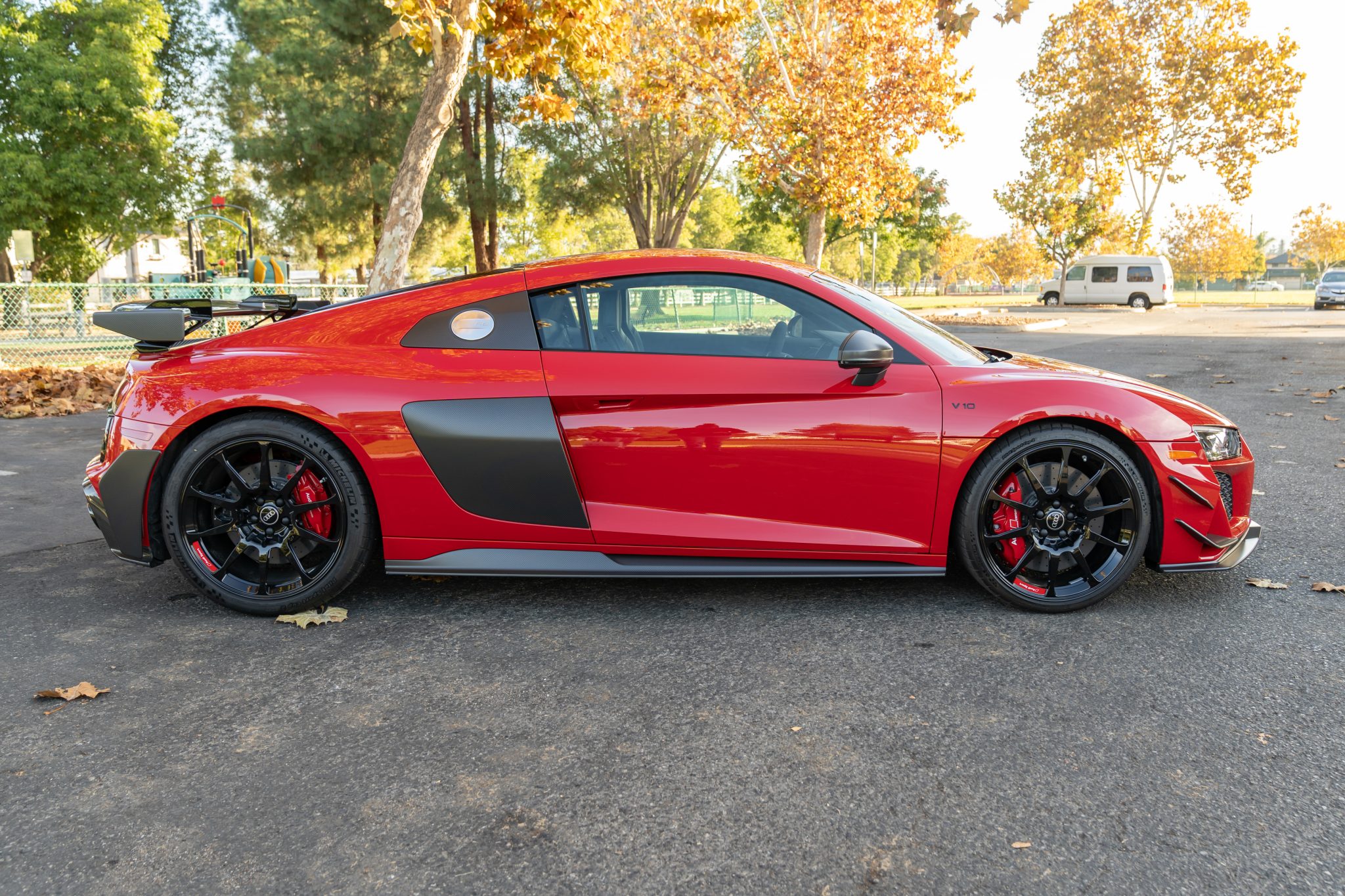 Audi Sport 20″ ten-spoke forged wheels are mounted with Michelin Pilot Sport Cup 2 tires. Braking is handled by red-finished calipers fitted over cross-drilled and ventilated ceramic-composite discs at each corner. The factory sport suspension system features a carbon-fiber front sway bar, and Torque Rear Mode control for the traction and stability controls was added for GT models.