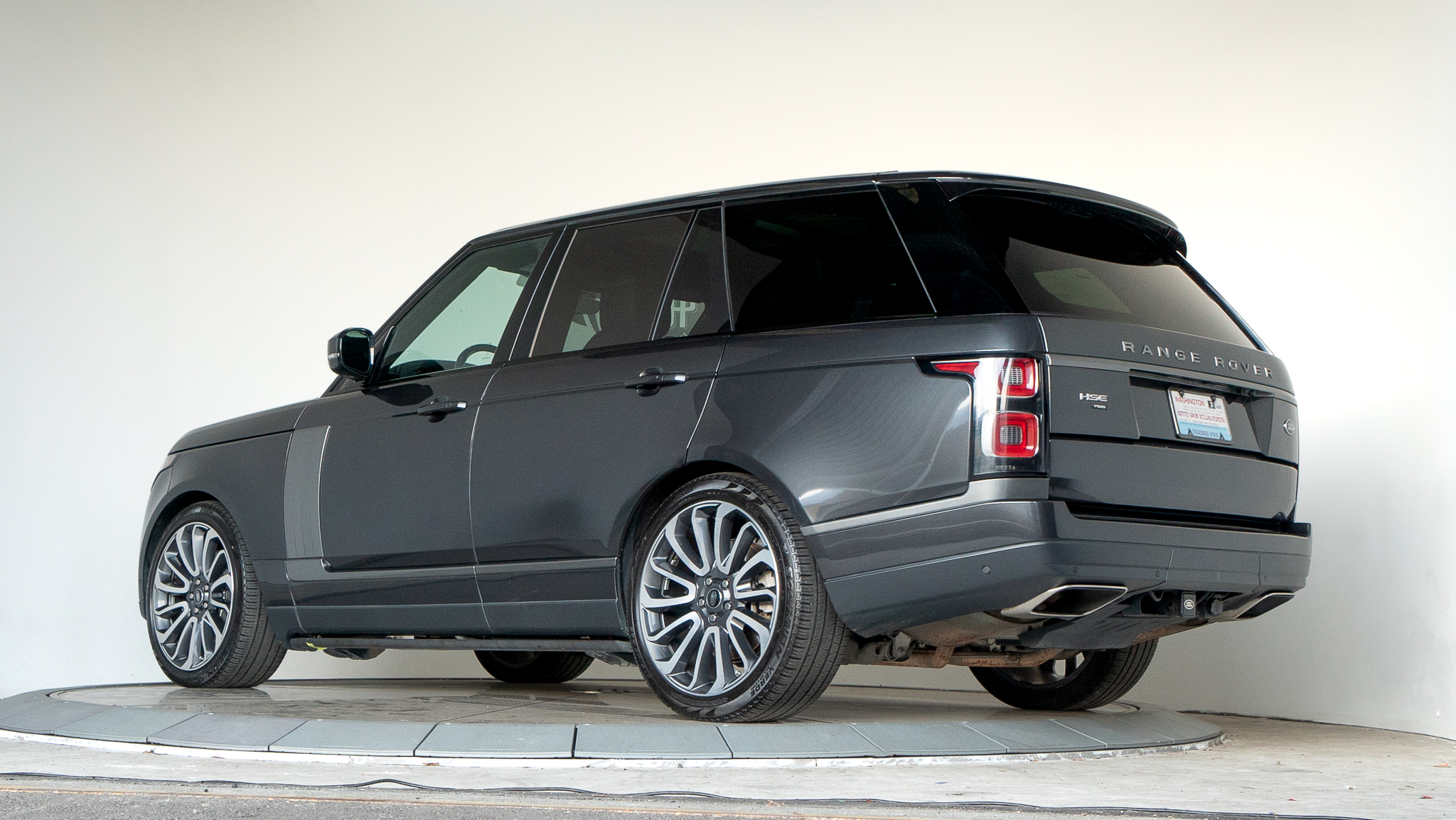 Diamond-turned 22″ Style 7007 alloy wheels are mounted with 275/40 Pirelli Scorpion Verde All Season tires. The vehicle is equipped with a height-adjustable air suspension and a Terrain Response system. Stopping power is provided by four-wheel disc brakes with Cornering Brake Control, Hill Descent Control, Trailer Stability Control, Emergency Brake Assist, and Hill Start Assist. A wheel was refinished under current ownership.