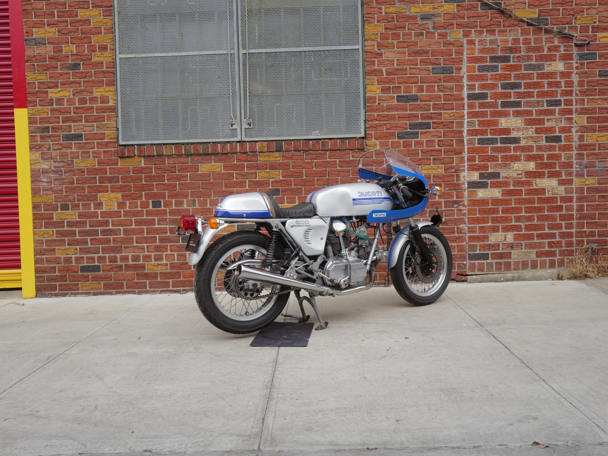 Wire-spoke 18″ wheels with shouldered Borrani rims are mounted with Metzeler tires. Suspension consists of a conventional 38mm Marzocchi fork as well as dual Marzocchi shocks mounted to the swingarm. Braking is from dual Brembo discs up front and a single version at the rear.
