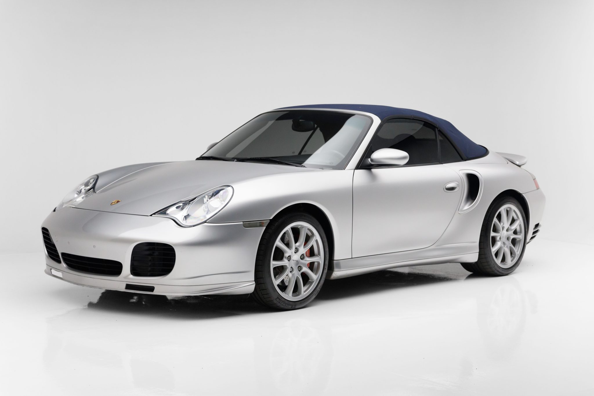 The 18″ GT3 wheels wear Michelin Pilot Sport tires. The car is equipped with Porsche Stability Management (PSM) and an automatic brake differential. Braking is from vented and cross-drilled rotors at all four corners. The brake fluid was changed in 2023.