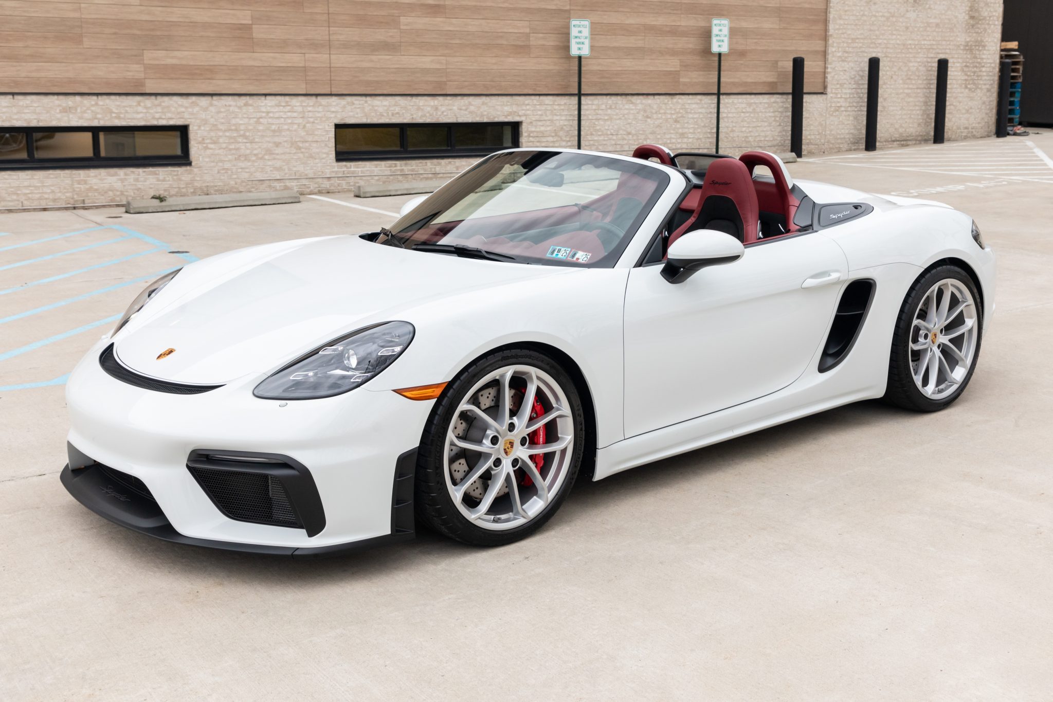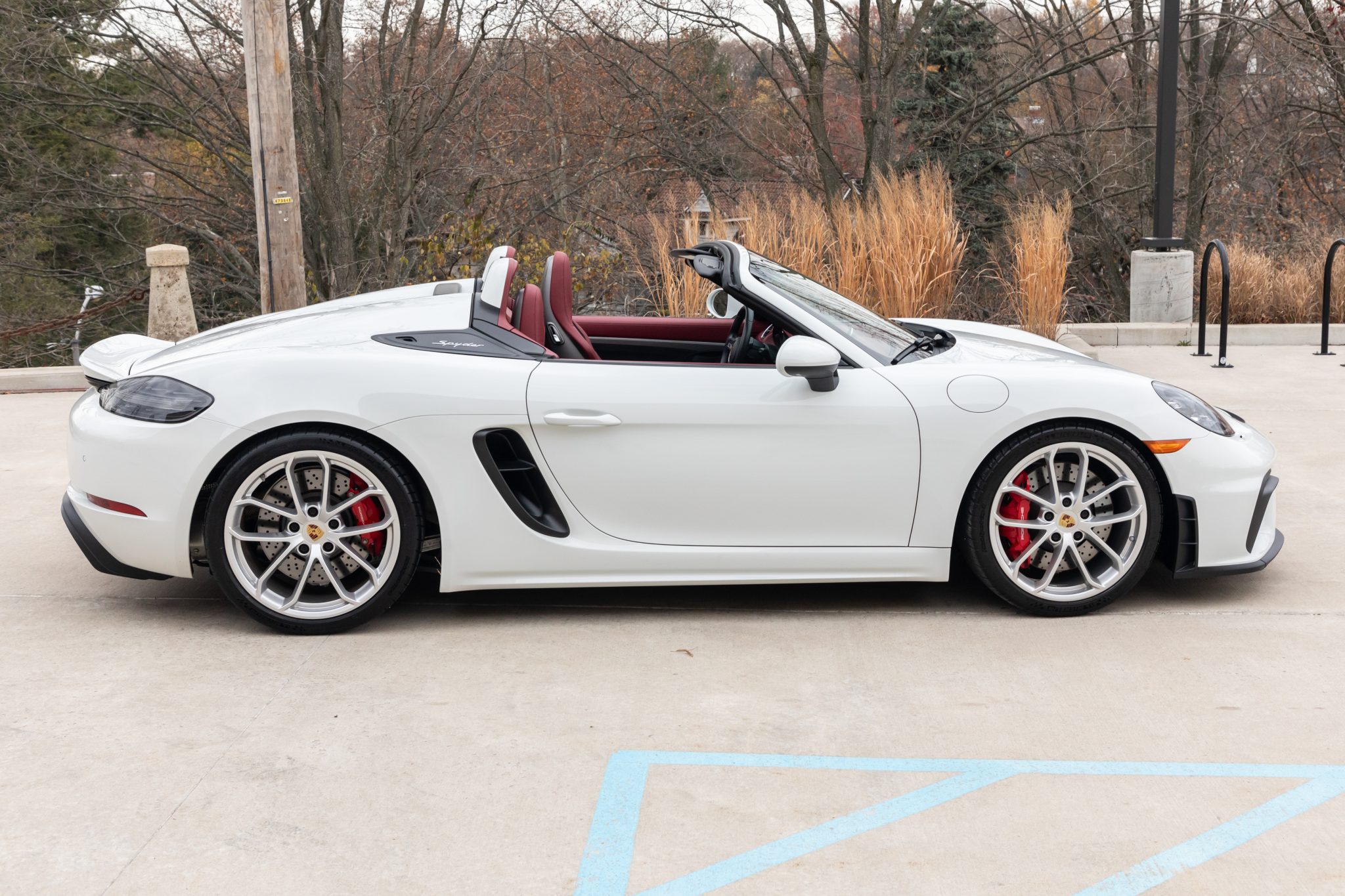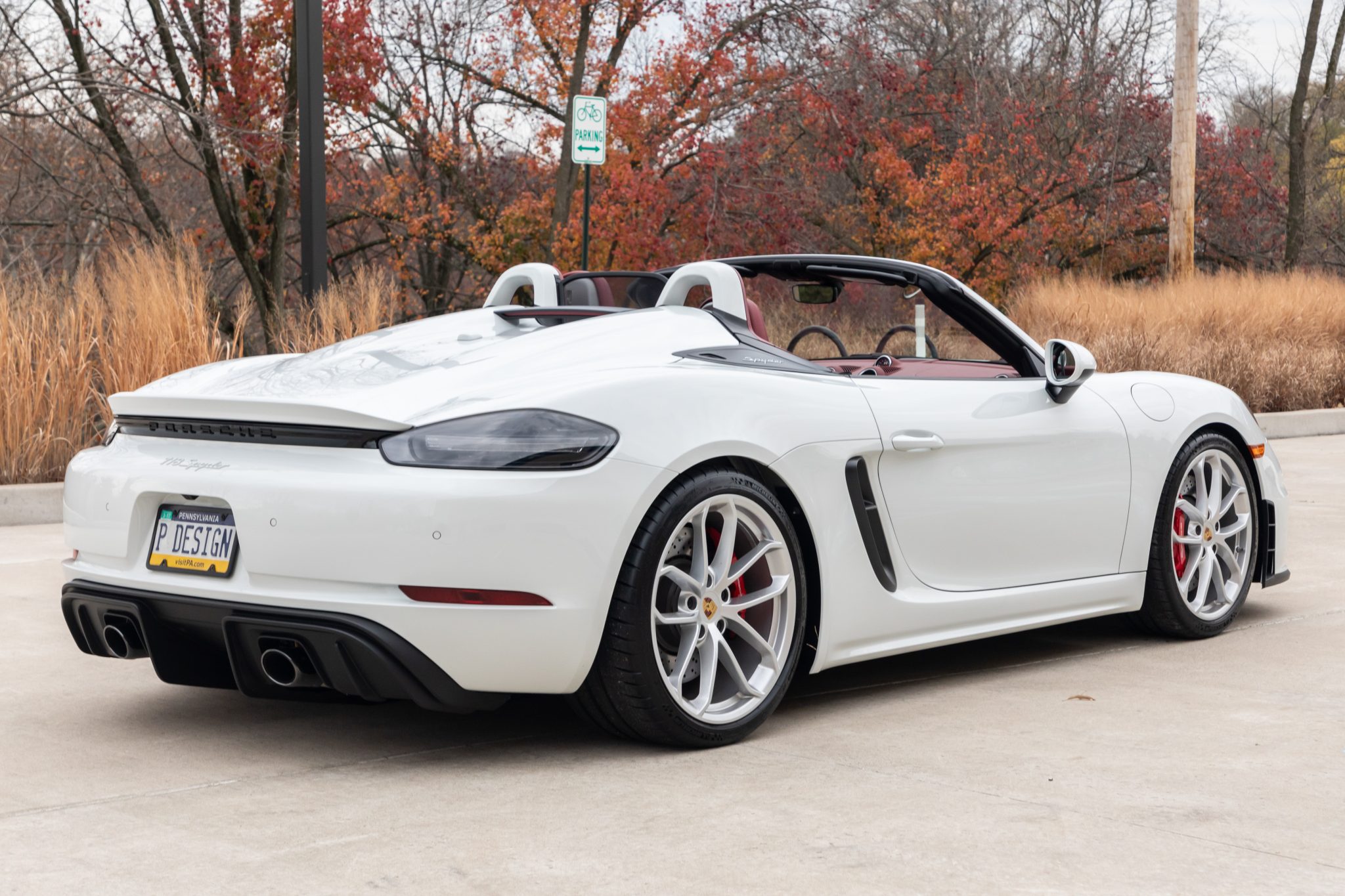 The 20″ 718 Spyder alloy wheels are mounted with Michele Pilot Sport Cup 2 tires. Stopping power is provided by ventilated and dimpled rotors with red-finished calipers at each corner. The car is equipped with Porsche Active Suspension Management (PASM).
