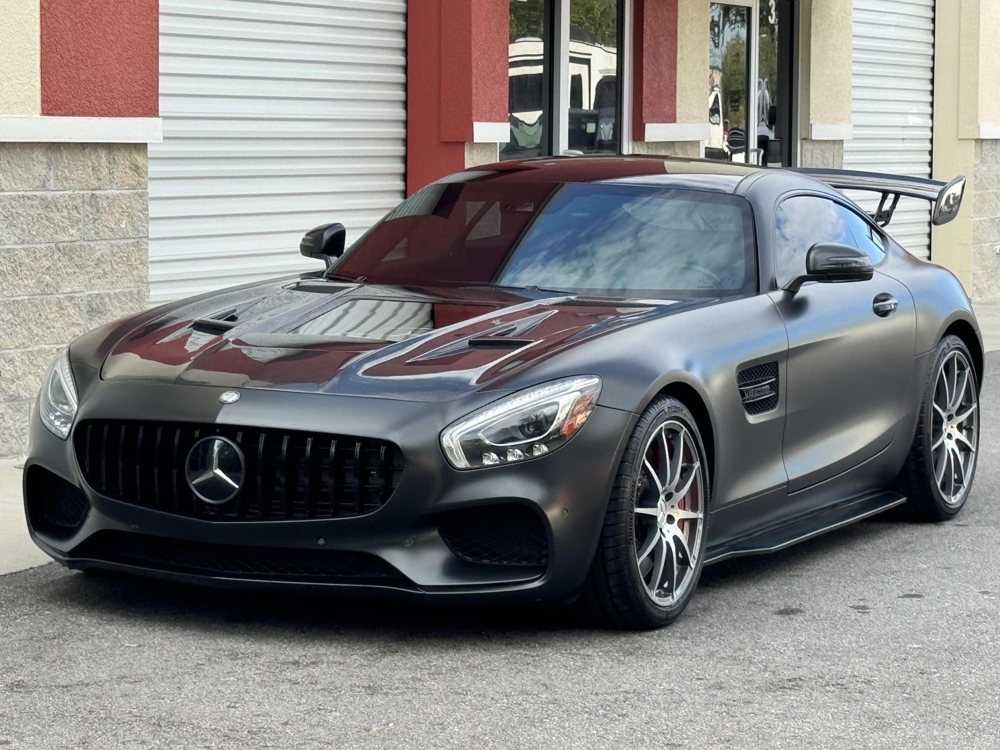 The 19″ and 20″ silver AMG forged 10-spoke wheels are mounted with Bridgestone Potenza tires. Red-finished calipers are fitted over cross-drilled and slotted discs at all four corners. The car came equipped from the factory with an AMG Sport suspension. A brake fluid flush was performed in May 2024, and the seller notes the tires were replaced in July 2024.