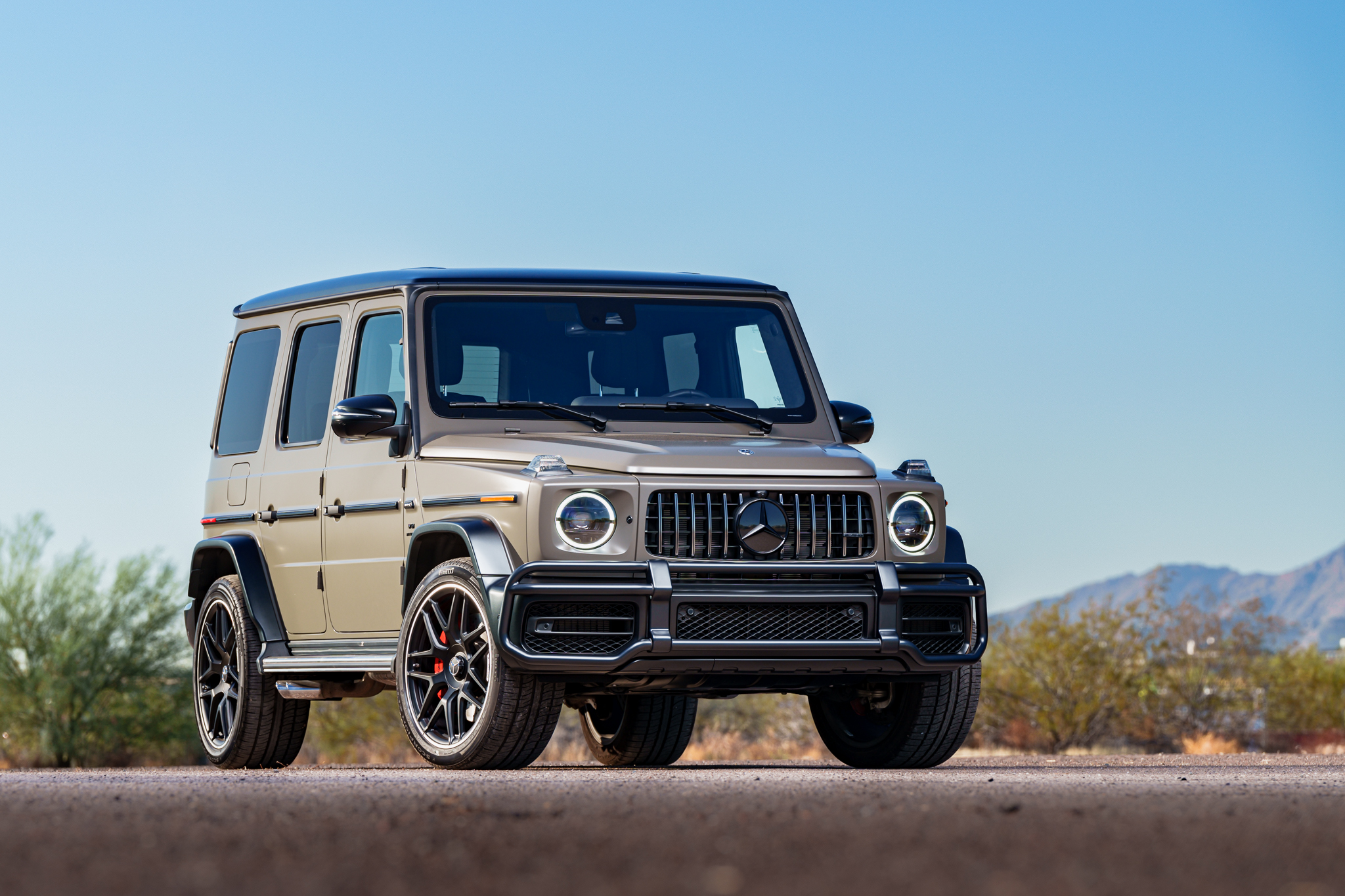 Forged 22″ AMG 10-spoke wheels are wrapped in 275/50 Pirelli Scorpion Zero Asimmetrico tires, and a full-size spare is secured in the rear carrier. Braking is handled by cross-drilled and vented rotors with red-finished calipers, and AMG models are equipped with Ride Control suspension and Dynamic Select driving modes.