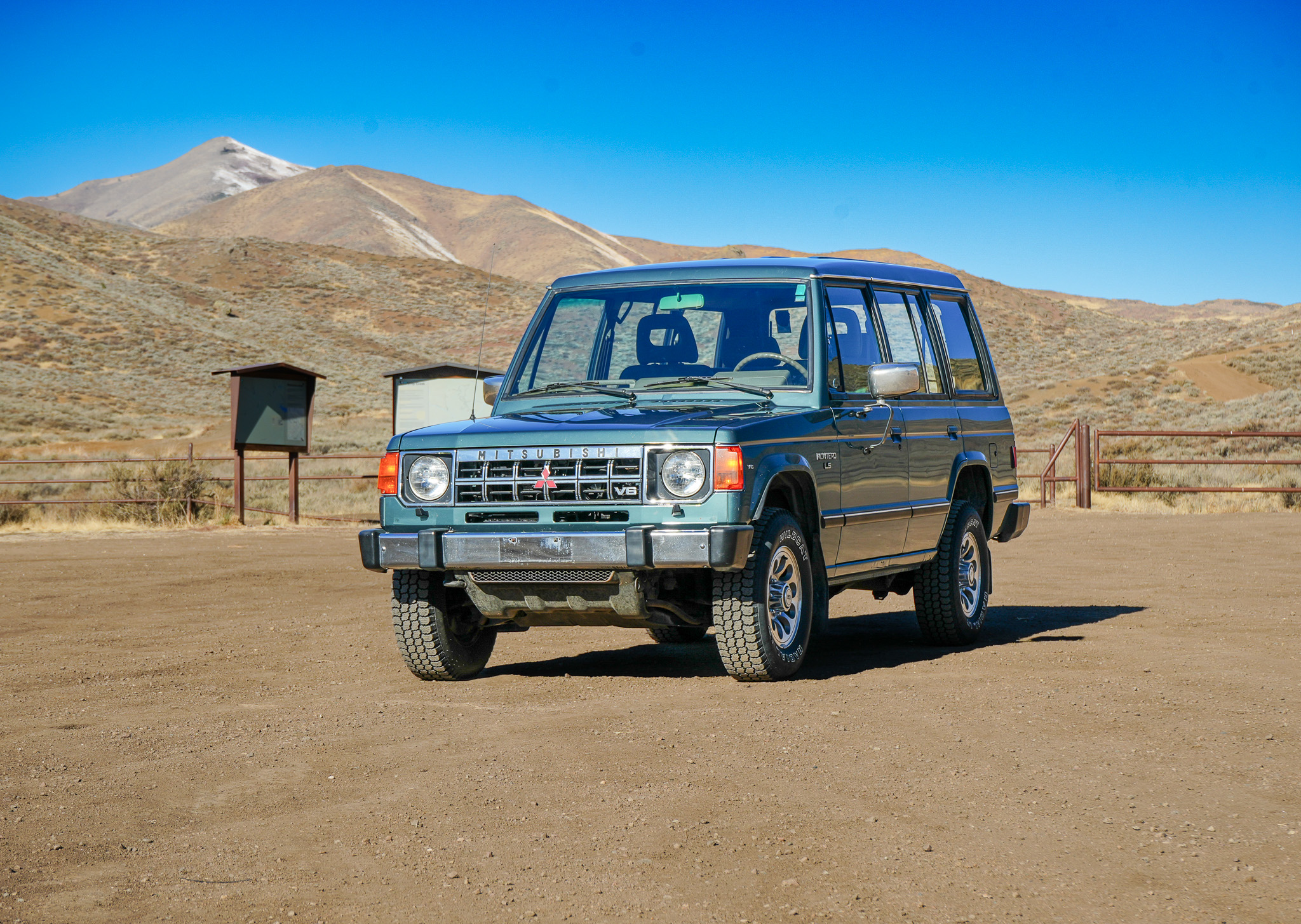 The 15″ alloy wheels are mounted with 235/75 Wildcat Radial GT tires and a covered spare is affixed to the swing-out rear door. The truck is equipped with automatically locking front hubs, and braking is provided by power-assisted front discs and rear drums. An inspection report from September 2024 notes that the pitman and idler arm have a lot of play.