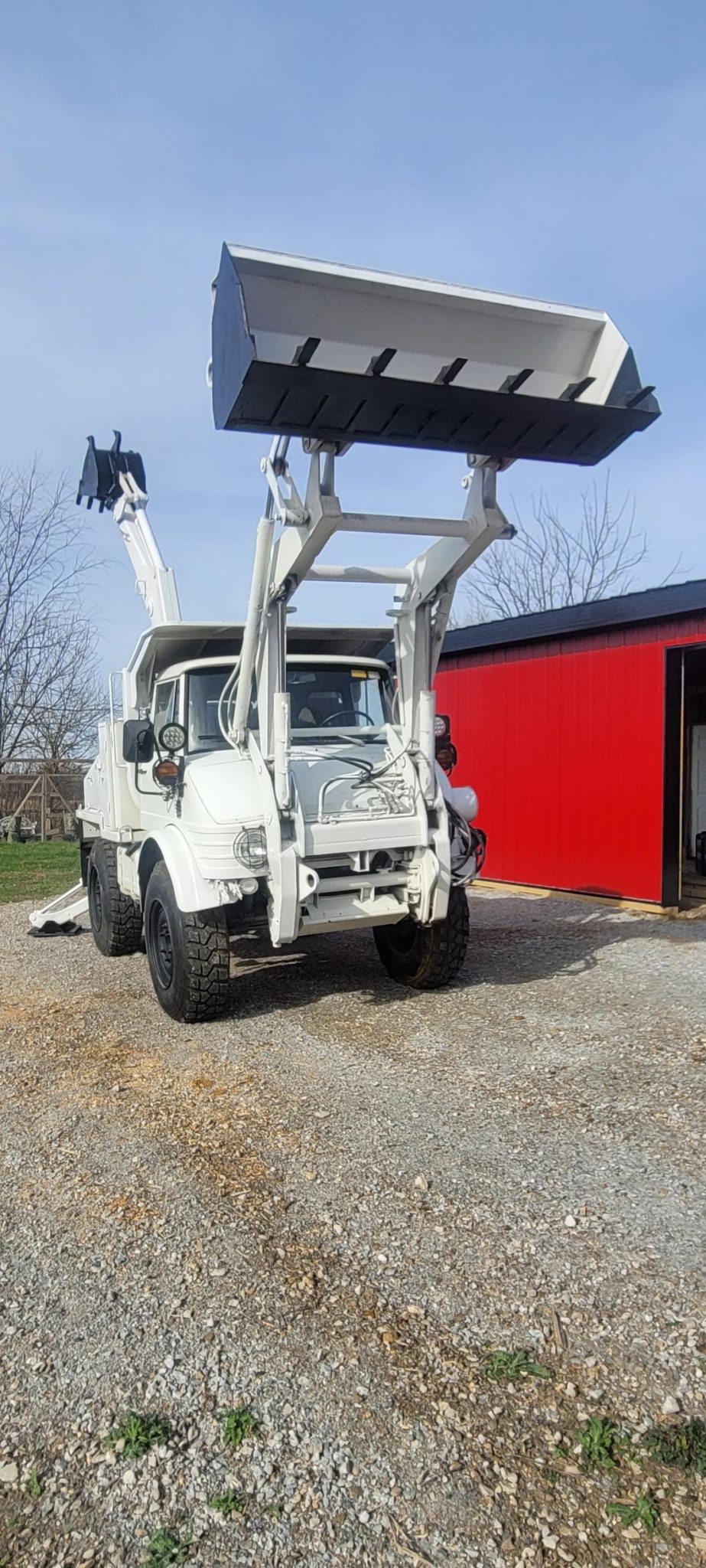 Black-finished 20″ steel wheels wear 335/80 Pirelli Pista tires that were mounted in February 2024, and a non-matching spare is secured behind the cab. Stopping power is provided by four-wheel discs, and the brake fluid was flushed in preparation for the sale.
