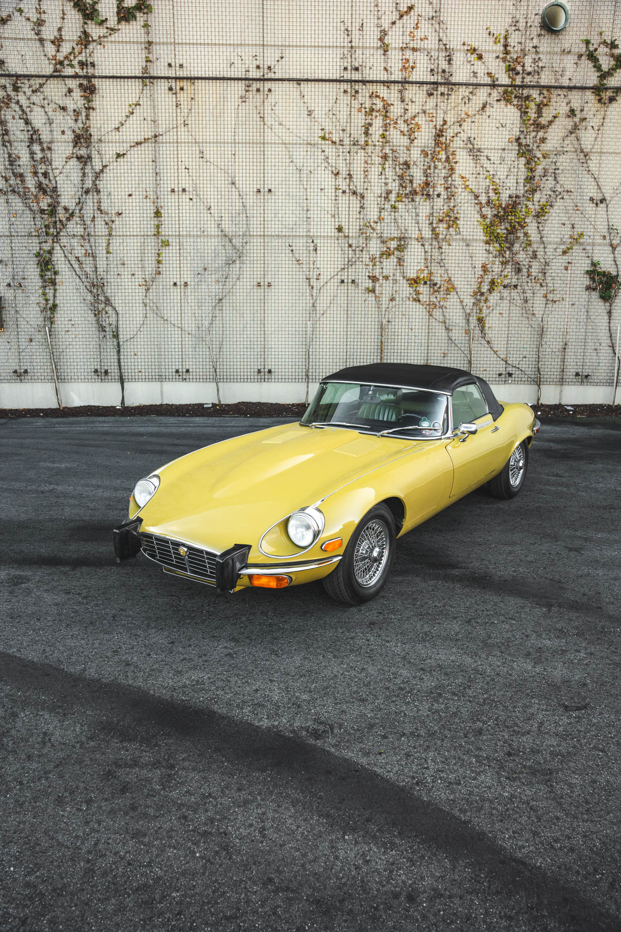 The 15″ wire-spoke wheels are secured with knock-off spinners and are mounted with 205/70 Vreedstein Sport Classics tires that show date codes from 2018. The Series III E-Type was factory equipped with power steering, and stopping power is provided by four-wheel disc brakes with inboard-mounted rear rotors.