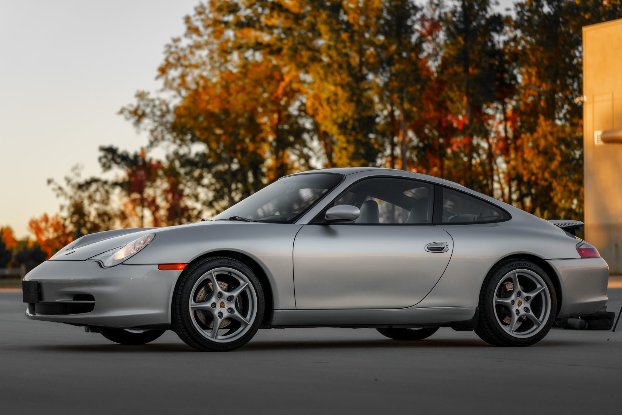 Silver 18” Carrera II wheels are mounted with Michelin Pilot Sport tires that have 2021 and 2023 date codes. Braking is handled by four-piston Porsche-branded calipers fitted over cross-drilled rotors at all four corners.