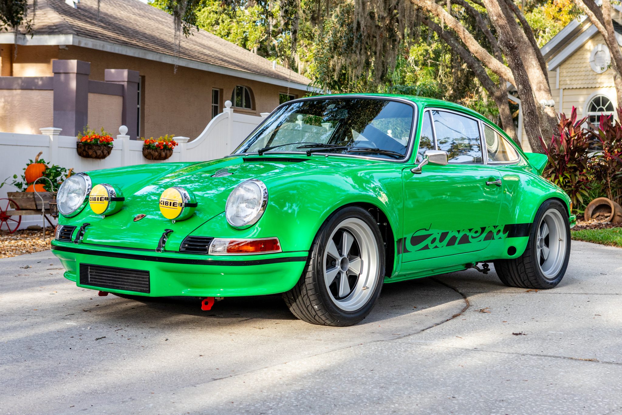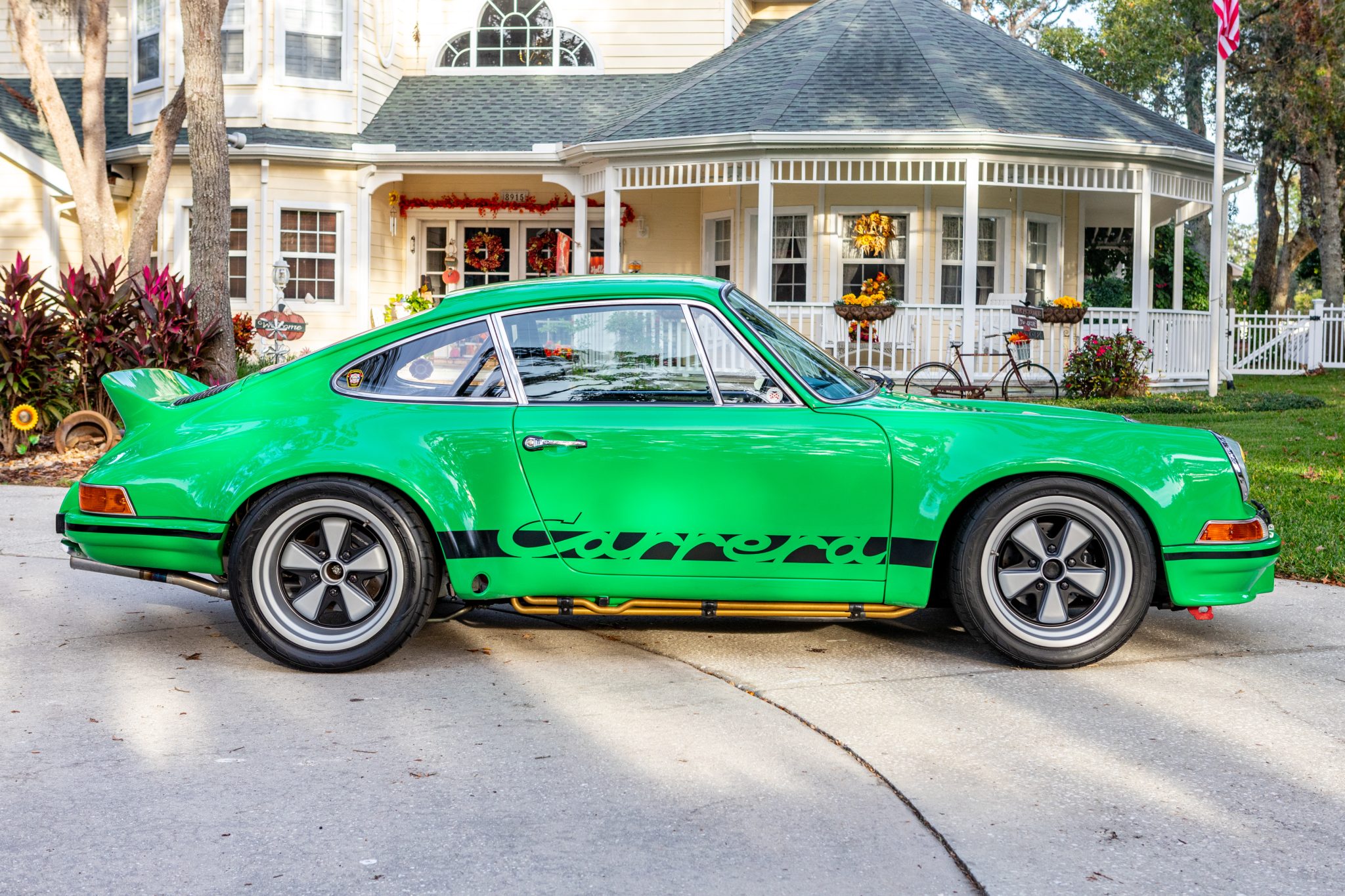 Fuchs-style 17” wheels are wrapped in 245/45 front and 315/35 rear Nitto NT555 G2 tires that were mounted in March 2023. Suspension components installed at Kostopoulos AutoSport include Koni shocks, billet front camber plates, gusseted upper-rear shock mounts, spherical bushings, and Sway-A-Way hollow torsion bars as well as a Weltmeister bump steer kit, adjustable rear spring plates, swing arm bushings, and sway bars. The four-wheel disc brakes feature four-piston front calipers, Brembo rear calipers, stainless-steel-braided hoses, and drilled rotors all around.