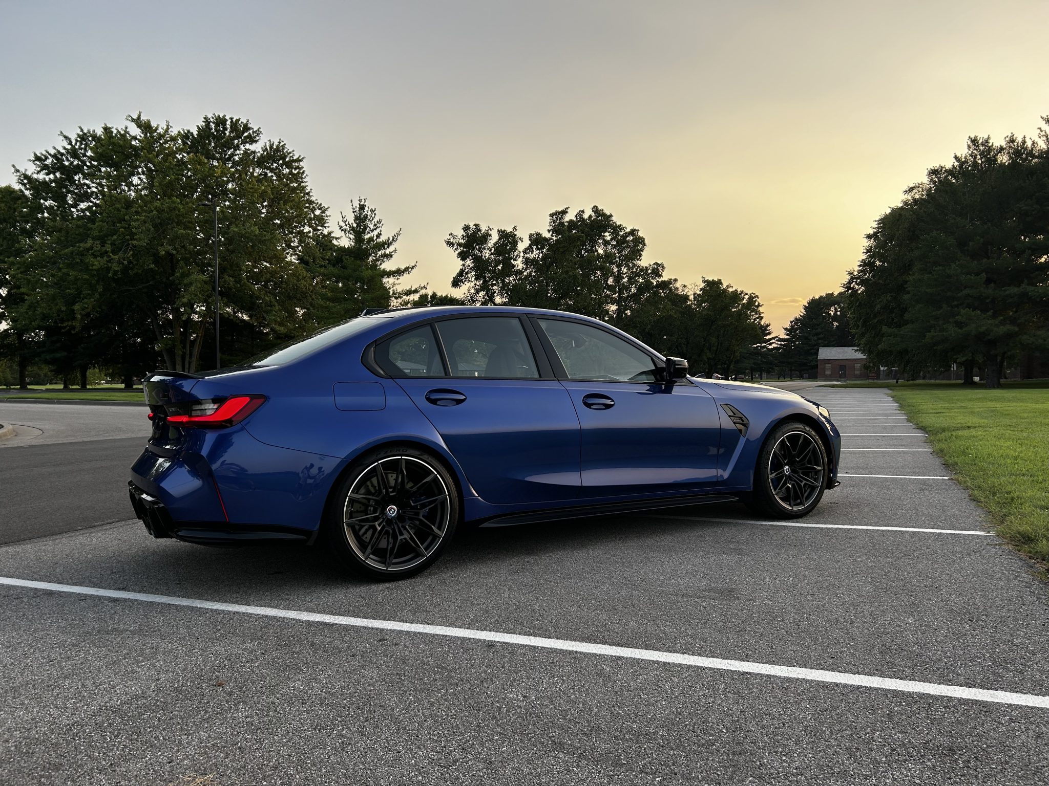 The Style 825M 19″ and 20″ wheels are mounted with 275/35 front and 285/30 rear Pirelli P Zero tires. The car is equipped with an Adaptive M Suspension with electronically controlled dampers configurable via the M Drive system. Braking is provided by blue-finished calipers over cross-drilled rotors at all four corners.