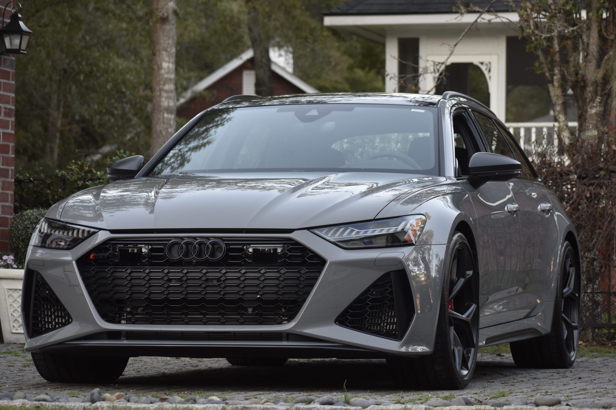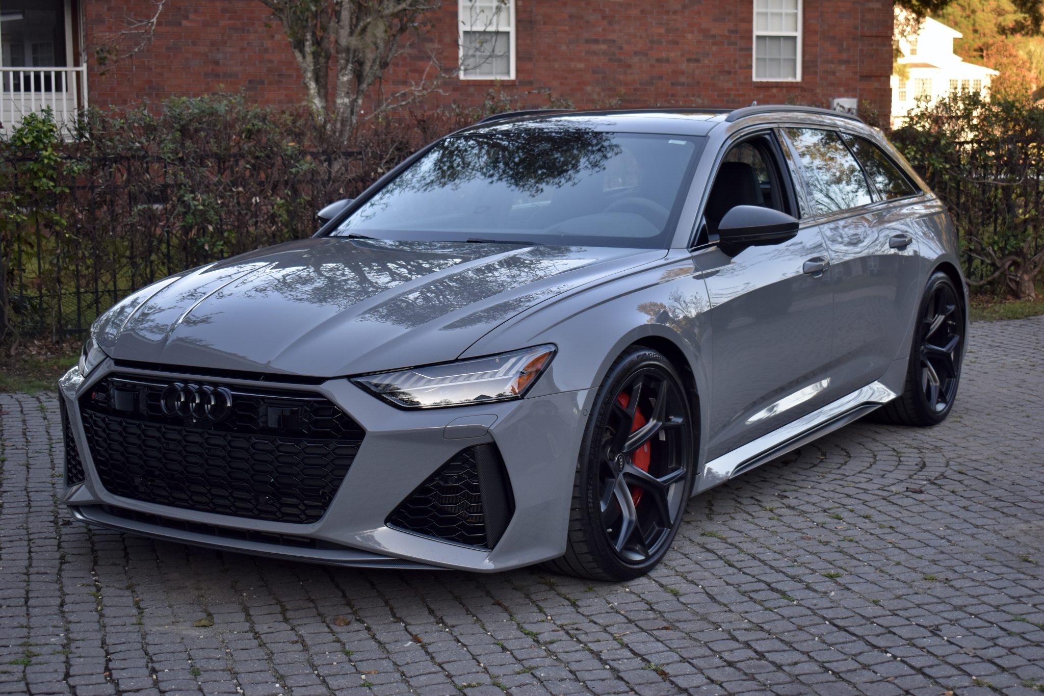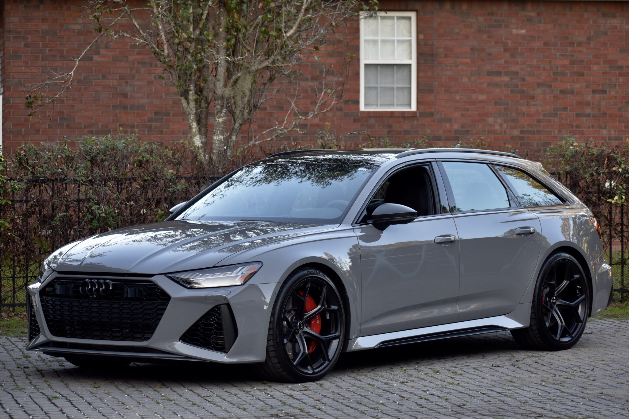 The 22″ five-Y-spoke wheels are finished in matte black and mounted with 285/30 Continental SportContact 7 tires. The car is equipped with all-wheel steering and an RS-tuned air suspension. Braking is handled by red-finished RS-logo calipers mounted over cross-drilled and ventilated rotors that measure 16.5″ up front and 14.6″ out back.