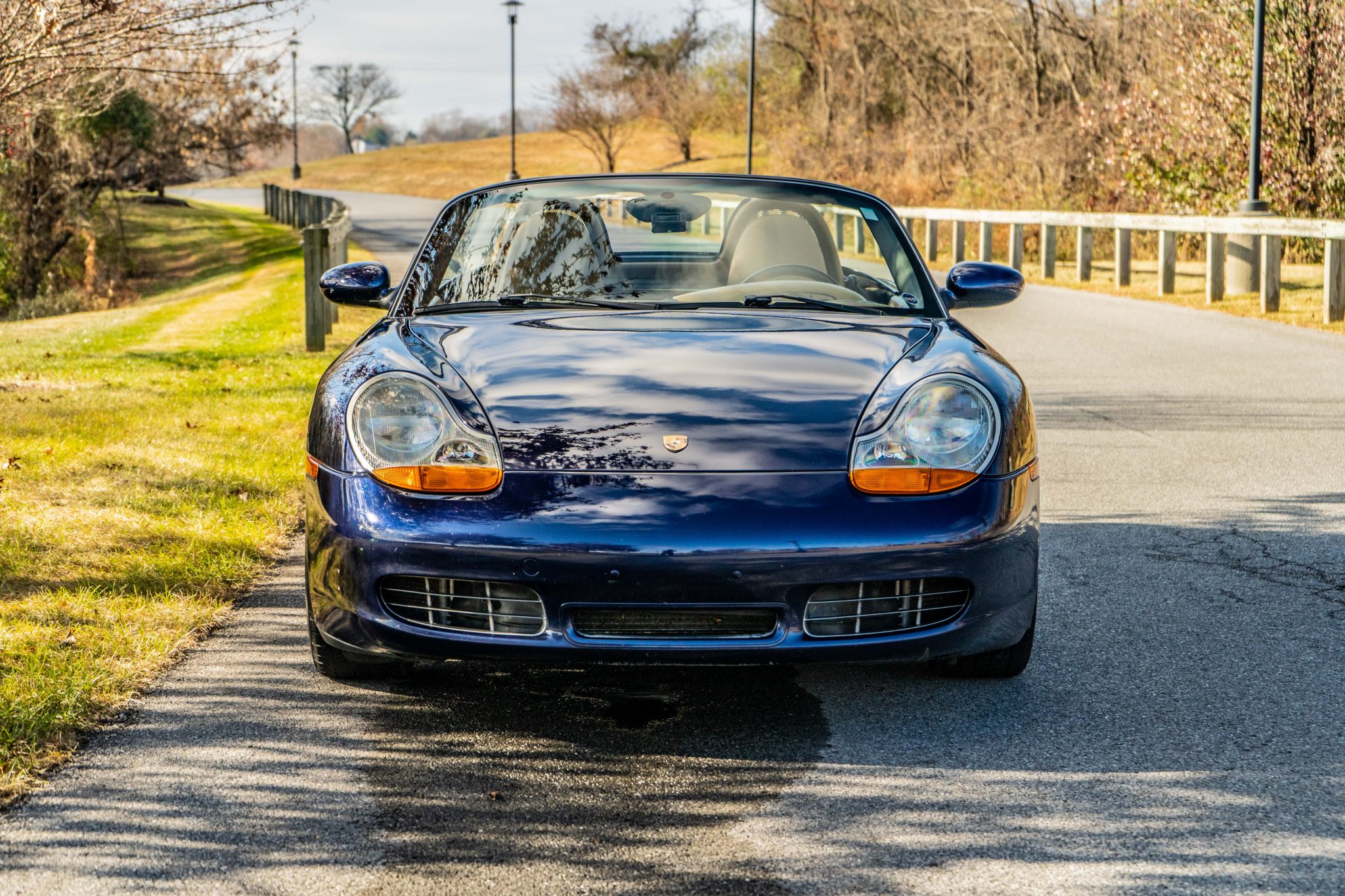 The selling dealer notes that the aftermarket 18″ 10-spoke wheels were replaced through an insurance claim and are mounted with 225/40 front and 265/35 rear General G-Max AS-07 tires. Braking is handled by four-piston Porsche-branded calipers fitted over cross-drilled rotors at all four corners.