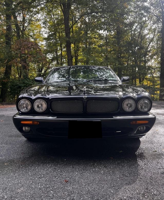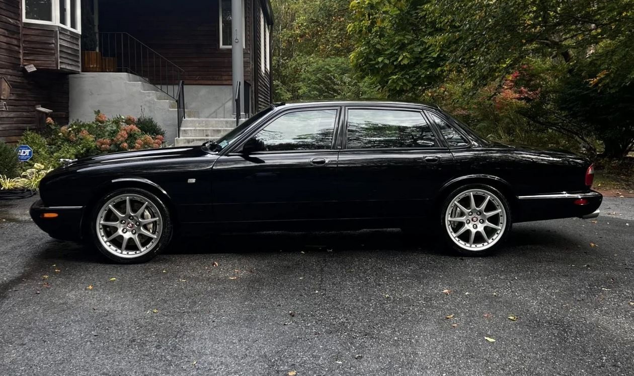 Multi-piece 19″ BBS Montreal wheels are wrapped in 255/35 GT Radial Champiro HPY tires. A compact spare tire is housed in the trunk compartment. Stopping power is provided by silver-finished Jaguar-branded Brembo brake calipers fitted over cross-drilled rotors at each corner. The front lower wishbones, ball joints, struts, mounts, and sway bar links were replaced in February 2023 along with the front brake pads and rotors. The left front brake hard line was replaced in September 2024. Curb damage is visible on the wheels.