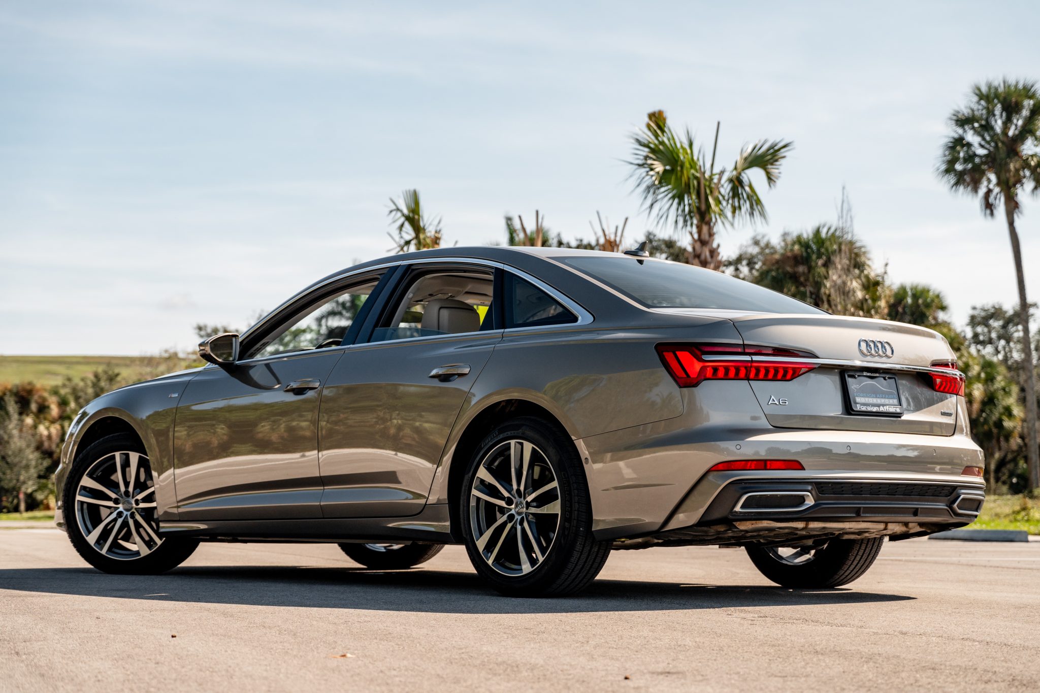 The bi-color 19″ double-spoke wheels are mounted with 245/45 Pirelli Cinturato P7 All Season tires. The car’s multiple Audi Drive Select modes coordinate the vehicle’s steering response, throttle, and shift points.