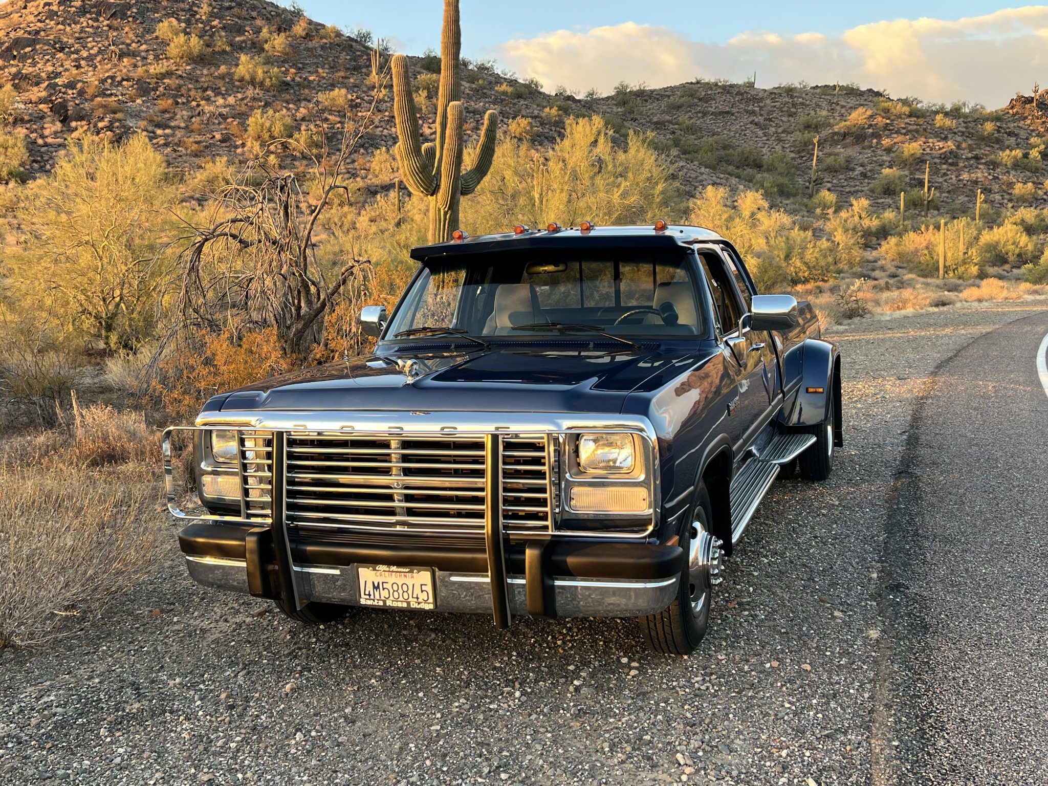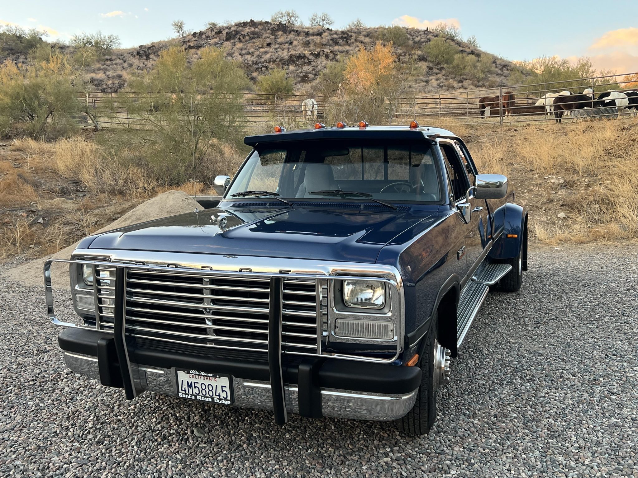 The 16″ eight-lug steel wheels were mounted with 215/85 Yokohama YK-HDX tires and Bilstein 4600 shock absorbers were installed in preparation for the sale. The truck is equipped with power steering, and braking is handled by power-assisted front discs and rear drums.