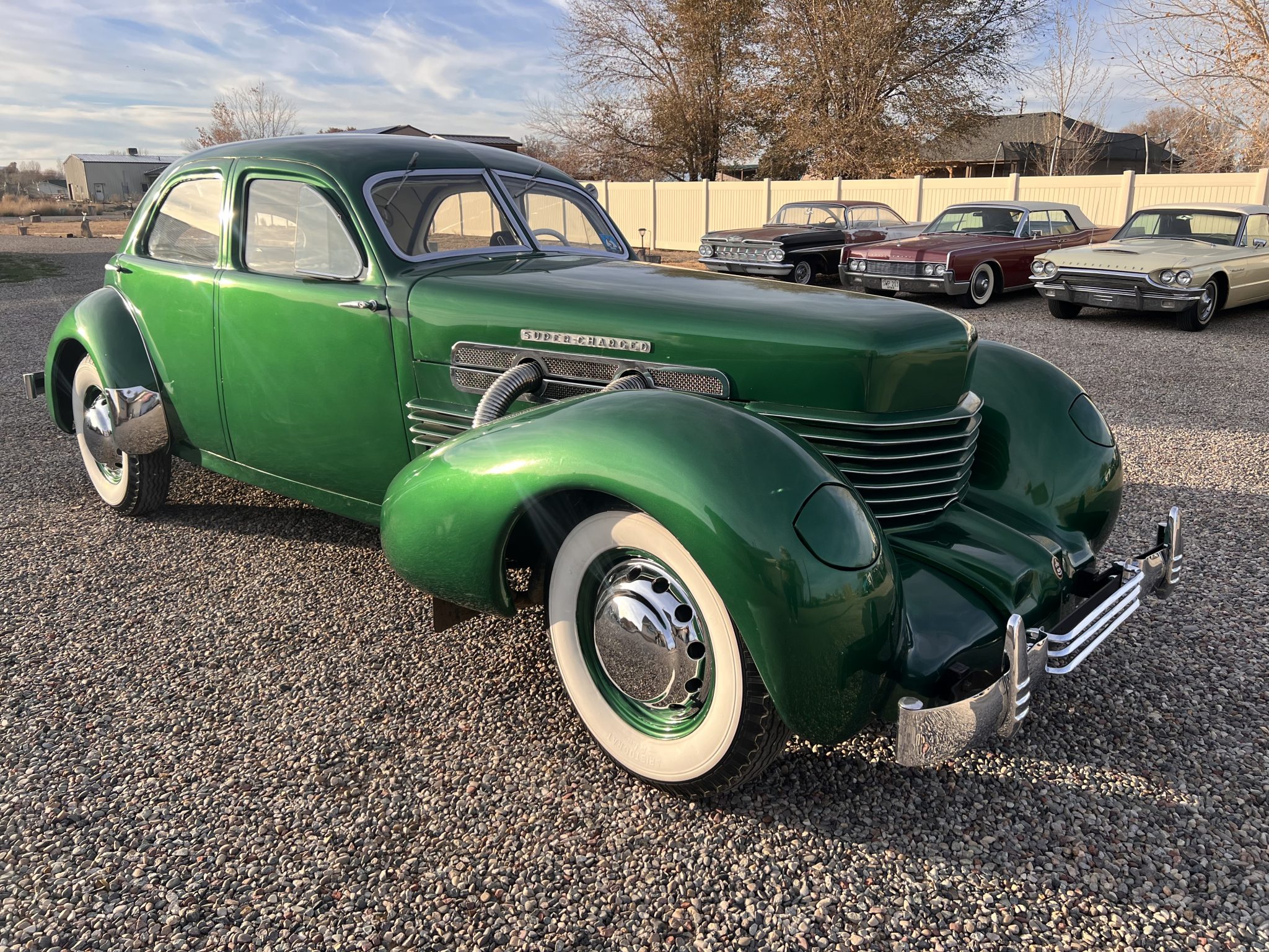 This example was repainted green, reportedly during the refurbishment performed in the late 1970s, and various scratches and chips are noted in the finish. “Super-Charged” badging and external exhaust pipes are said to have been retained after a supercharger was removed during the late-1970s project.